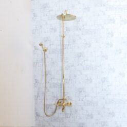 Unlacquered Brass Round Shower Head, With Arm Extension