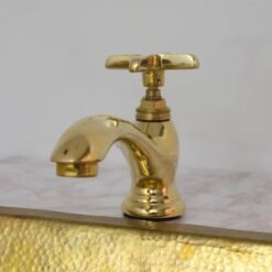 Unlacquered brass single hole bathroom faucet, vintage flat cross tap ibf02