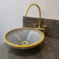 customizable brushed brass rim bathroom sink – brass & ceramic bathroom vessel – handmade basin