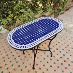 CUSTOMIZABLE Oval Mosaic Table – Crafts Mosaic Table – Blue and White Mid Century Zellije Table