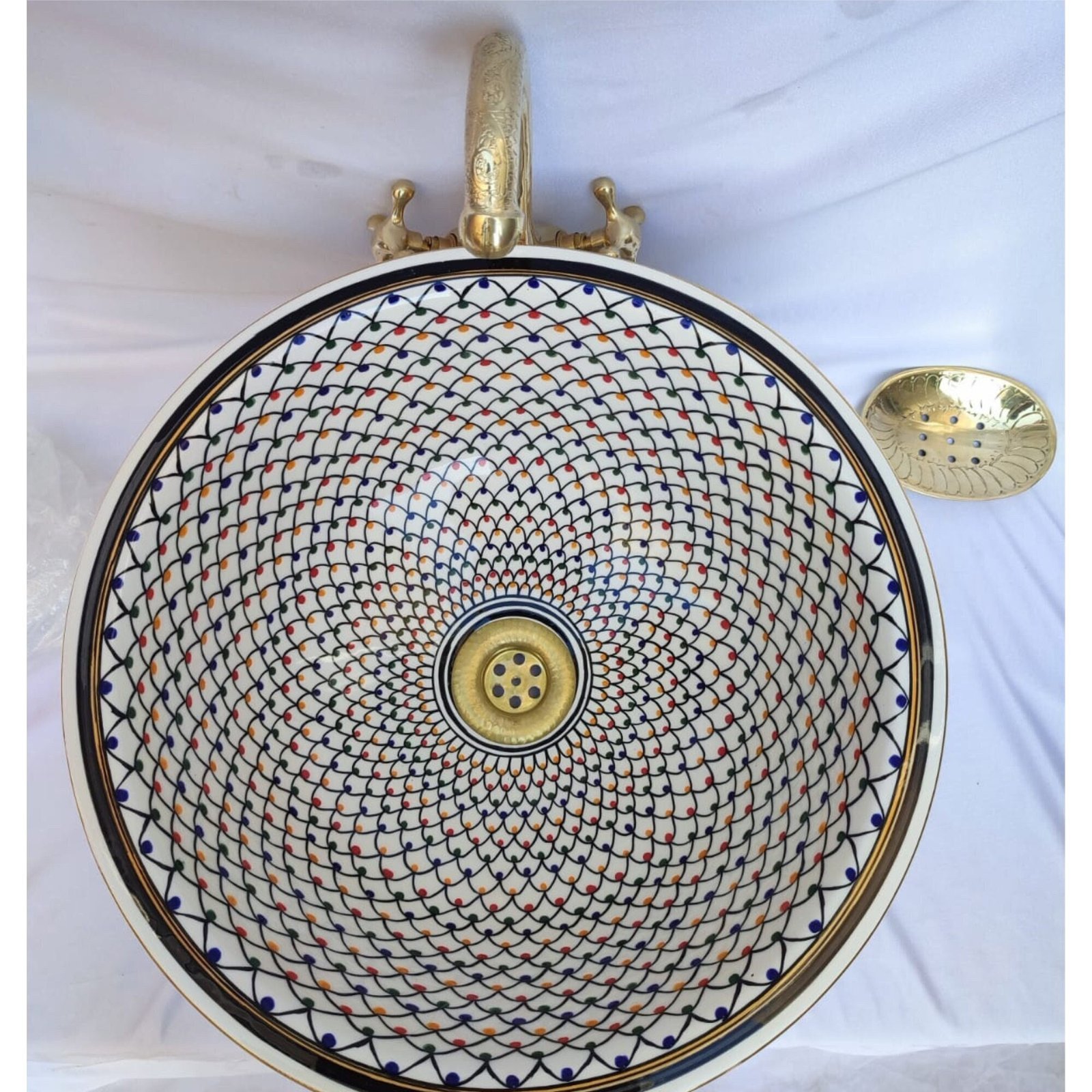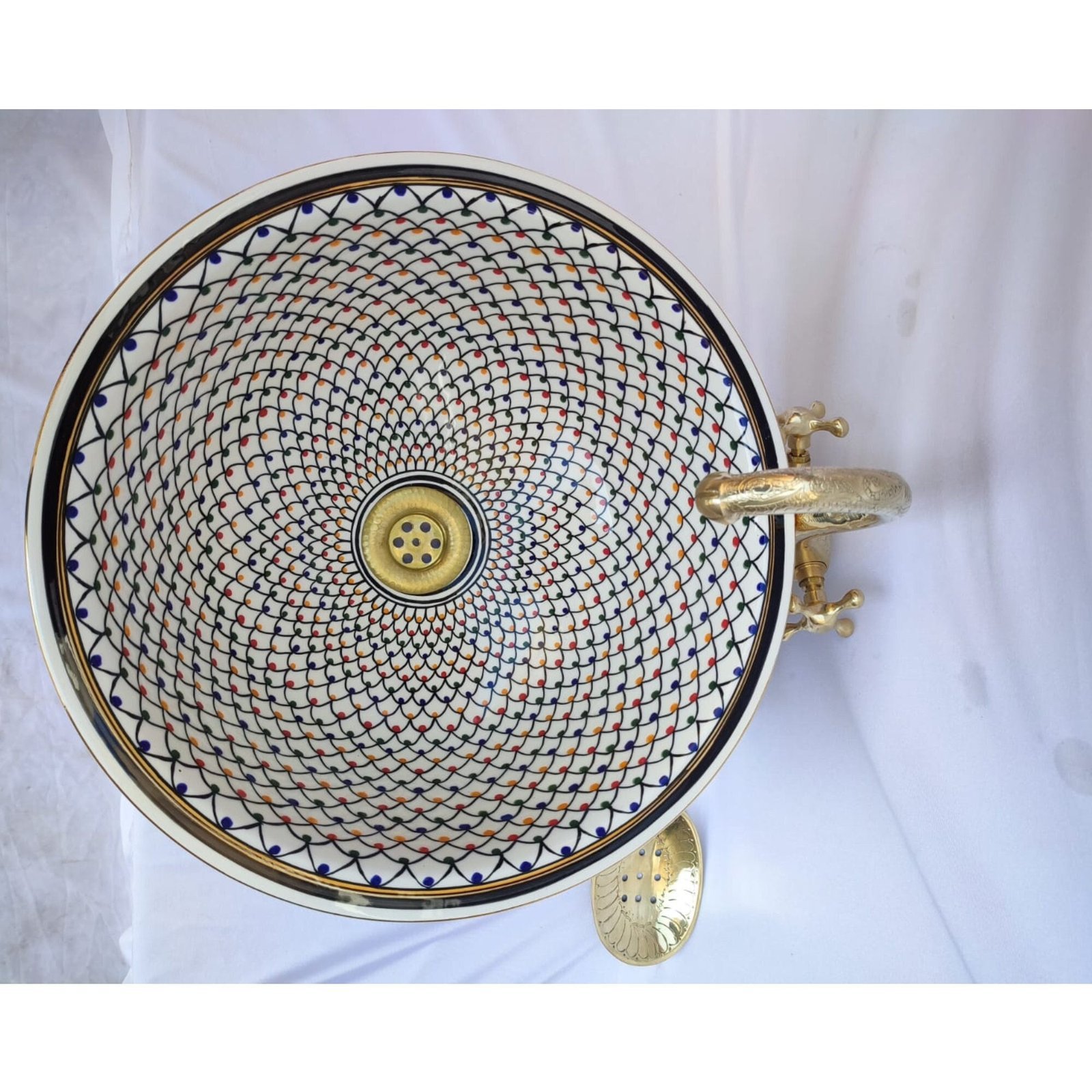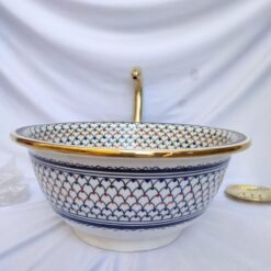 100% hand-crafted ceramic, hand-painted mid-century modern bathroom sink