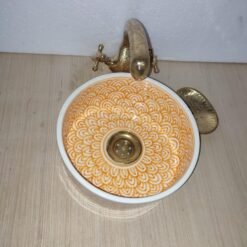 “Transform your bathroom into a haven of elegance with our handcrafted ceramic sink basin. Each piece is meticulously crafted and hand-painted, adding a touch of artisanal charm to your space. Inspired by mid-century modern design, this sink features clean lines and a sleek silhouette that effortlessly complements any decor style. Elevate your bathroom experience with this exquisite piece, perfect for those who appreciate the beauty of handmade craftsmanship.”