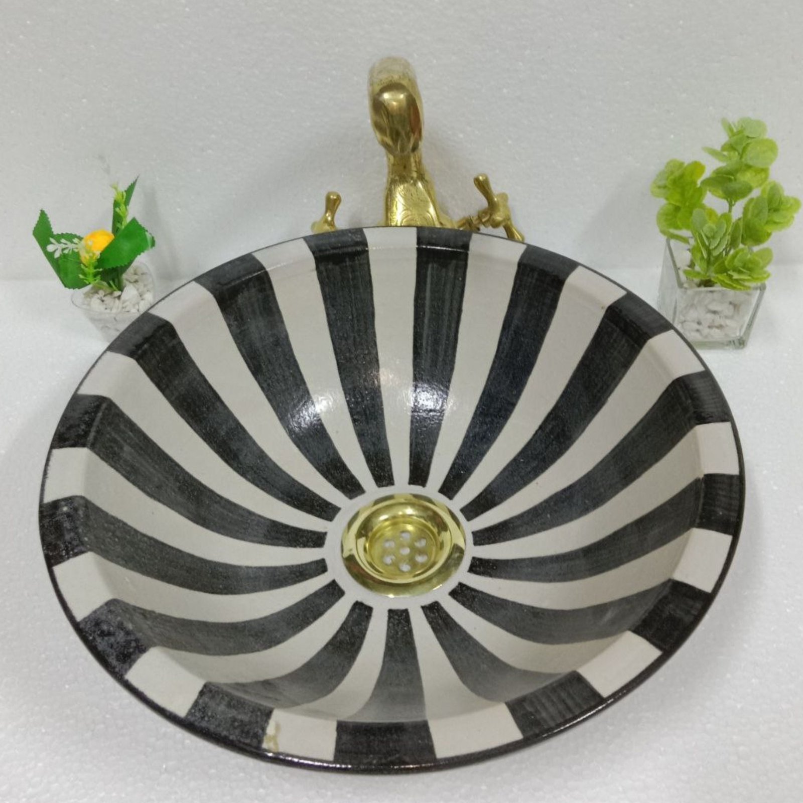 100% hand-crafted ceramic, hand-painted mid-century modern bathroom sink