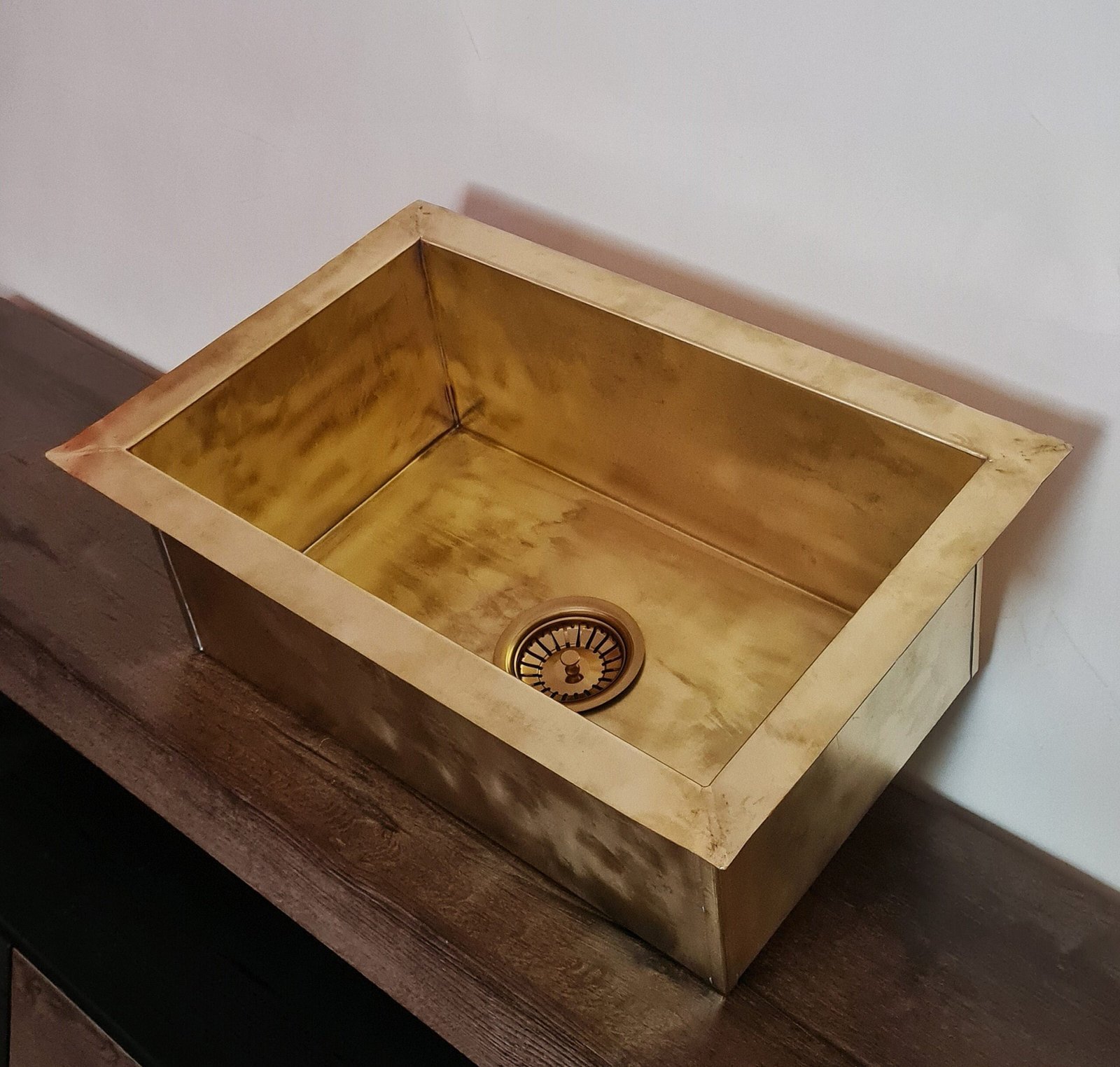 20″ x 17″ x 10″ Solid Brass Sink – Unlacquered Brass Kitchen Sink