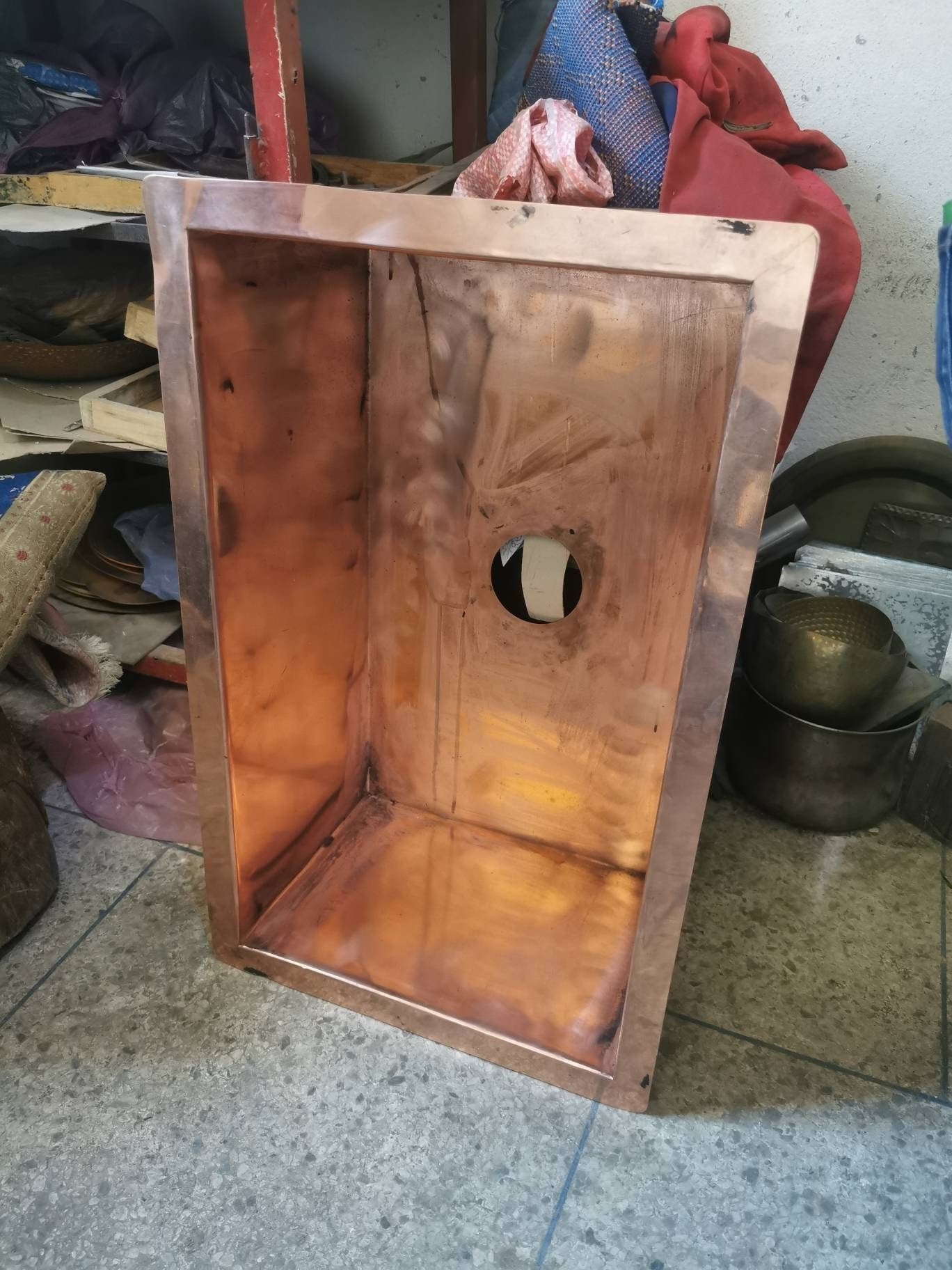 30″ x 16″ Handmade Solid Copper Undermount Kitchen Sink – Patina Copper Sink – Custom Unlaquered Copper Kitchen Sink – Bar Copper Sink