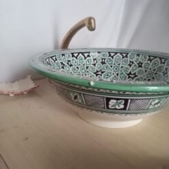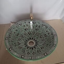 Elevate your bathroom with our exquisite Moroccan ceramic handmade sink. Handcrafted by skilled artisans, each piece is meticulously painted with intricate Arabic designs, adding a touch of cultural richness to your space. Perfect for adding a unique focal point to any bathroom, this hand-painted ceramic sink combines beauty with functionality, making it a must-have for those who appreciate craftsmanship and style.