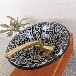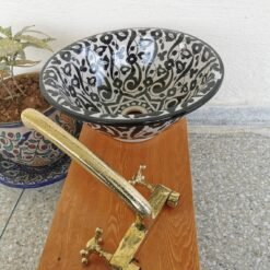 this amazing traditional Moroccan sink was handcrafted by professional workers, it represents the cultural diversity of Moroccan handcrafts and that is because of its design, material and the natural colors used at the surface of the sink, the height of this amazing piece of art is possibility of personal customization. by obtaining such objects you would be helping a dying craft to flourish again so that contact between the past and the present would never die not mentioning the happiness it would bring to poor workers on fields like this .