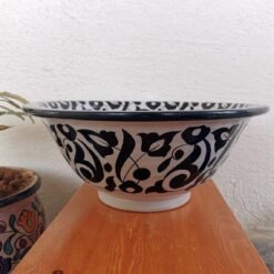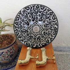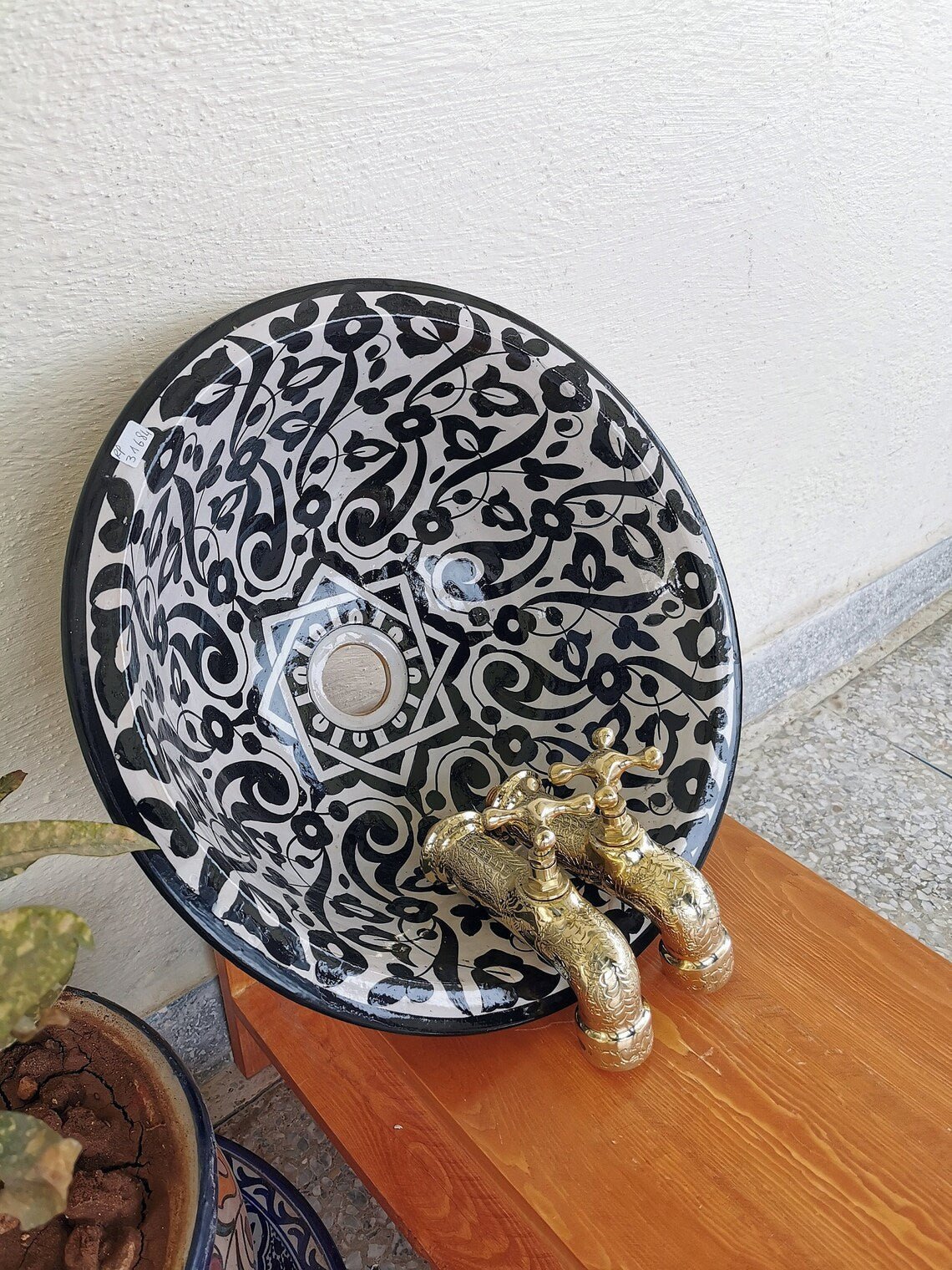 this amazing traditional Moroccan sink was handcrafted by professional workers, it represents the cultural diversity of Moroccan handcrafts and that is because of its design, material and the natural colors used at the surface of the sink, the height of this amazing piece of art is possibility of personal customization. by obtaining such objects you would be helping a dying craft to flourish again so that contact between the past and the present would never die not mentioning the happiness it would bring to poor workers on fields like this .