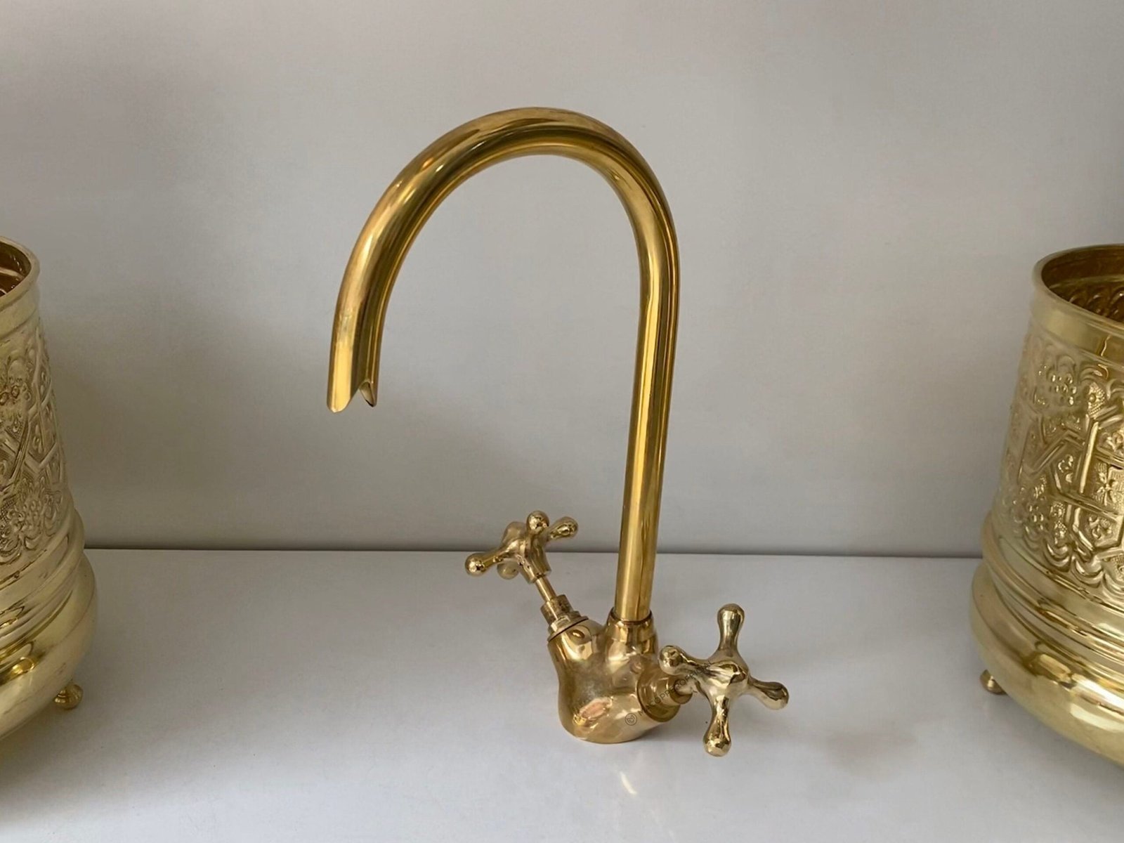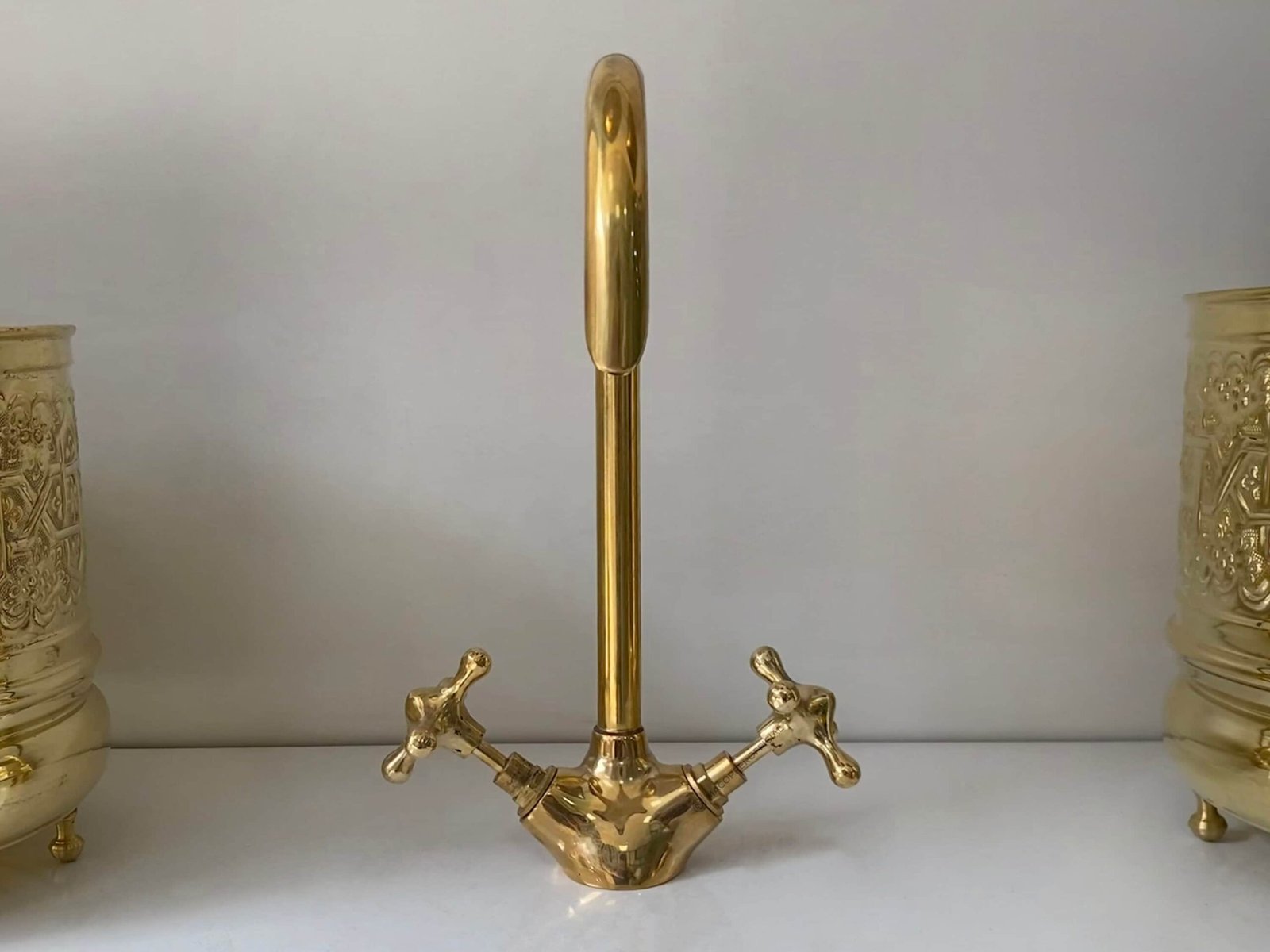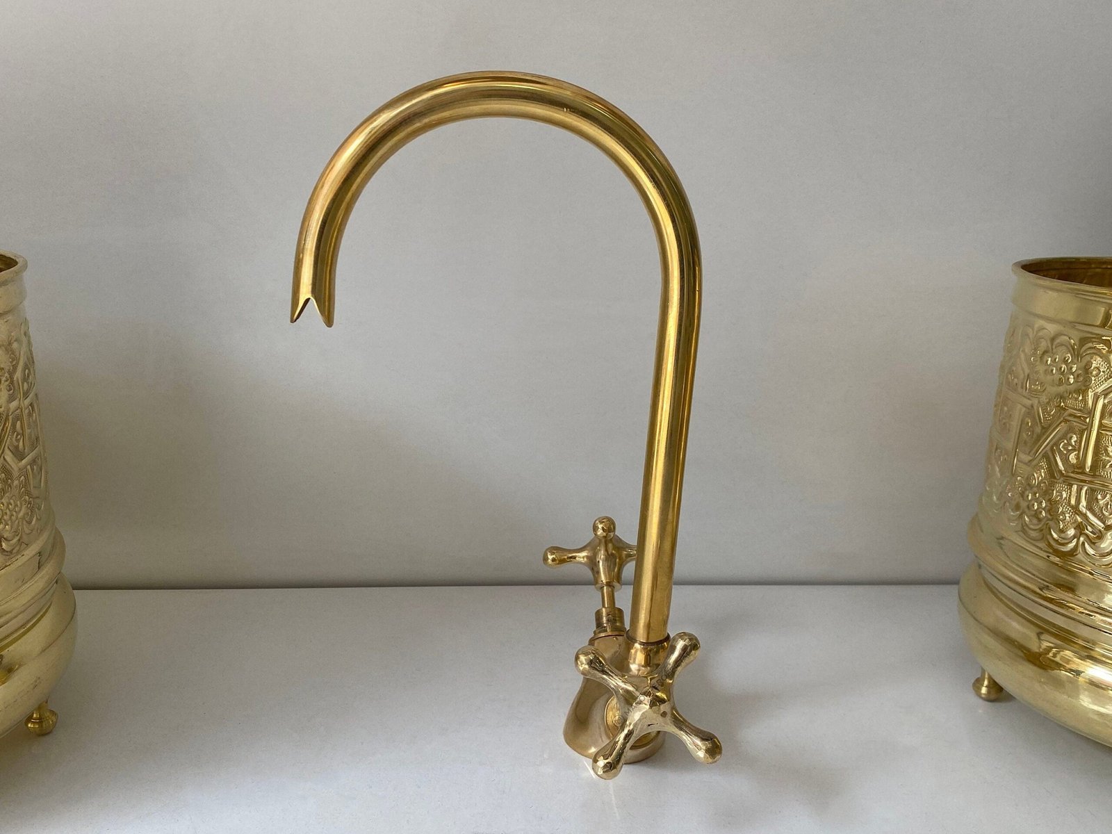 This faucet is 100% handmade of solid unlacquered brass, it gets warm patina overtime . It will add an elegant, charming and antique decoration to your space.