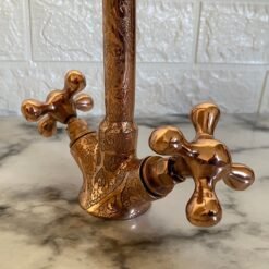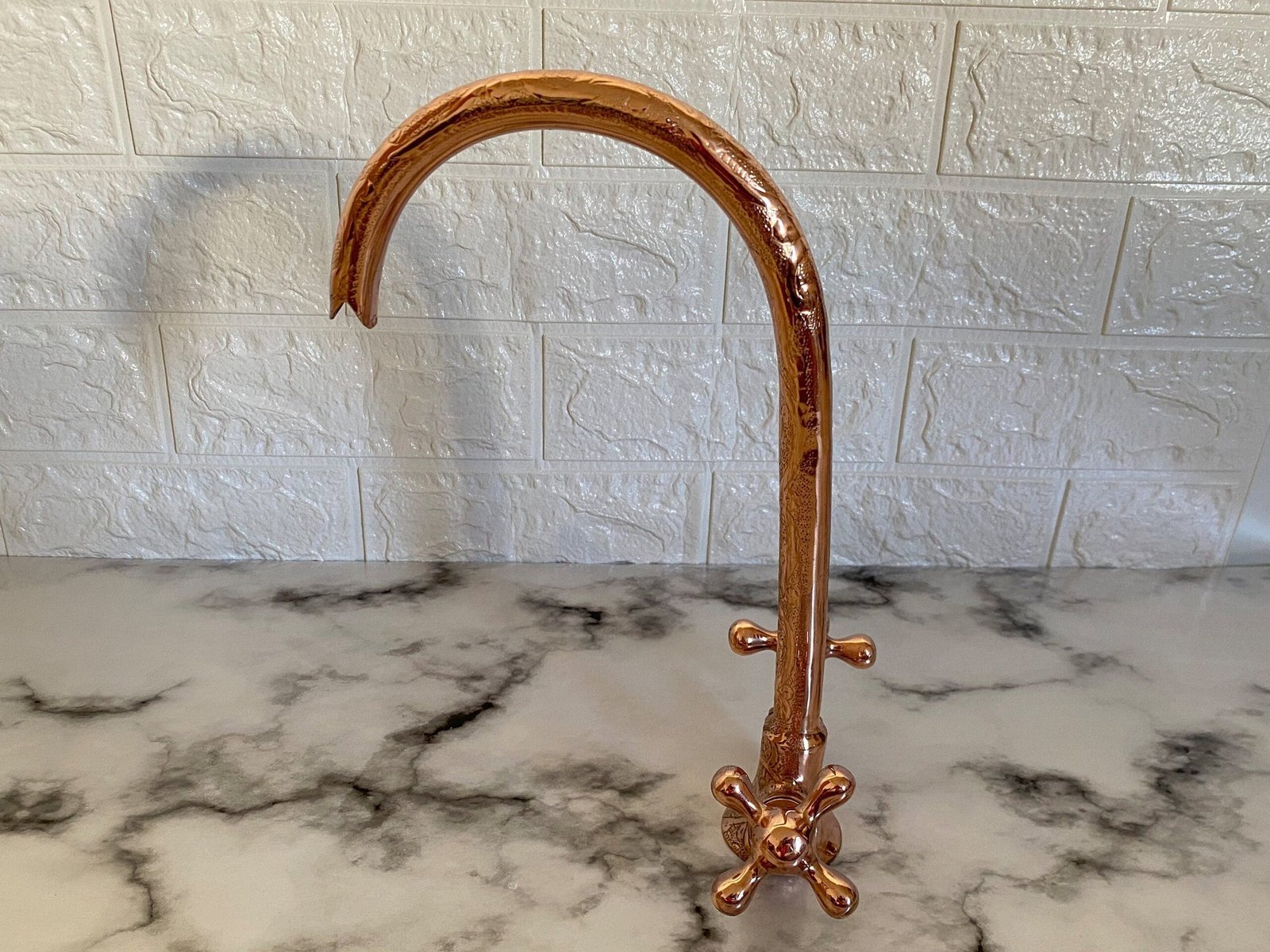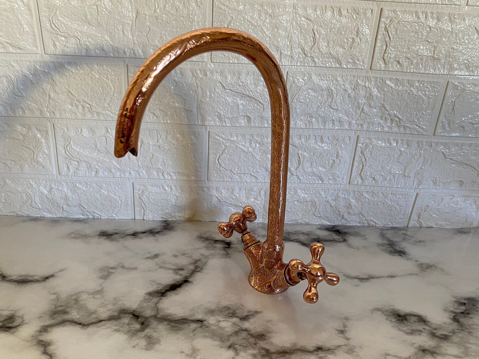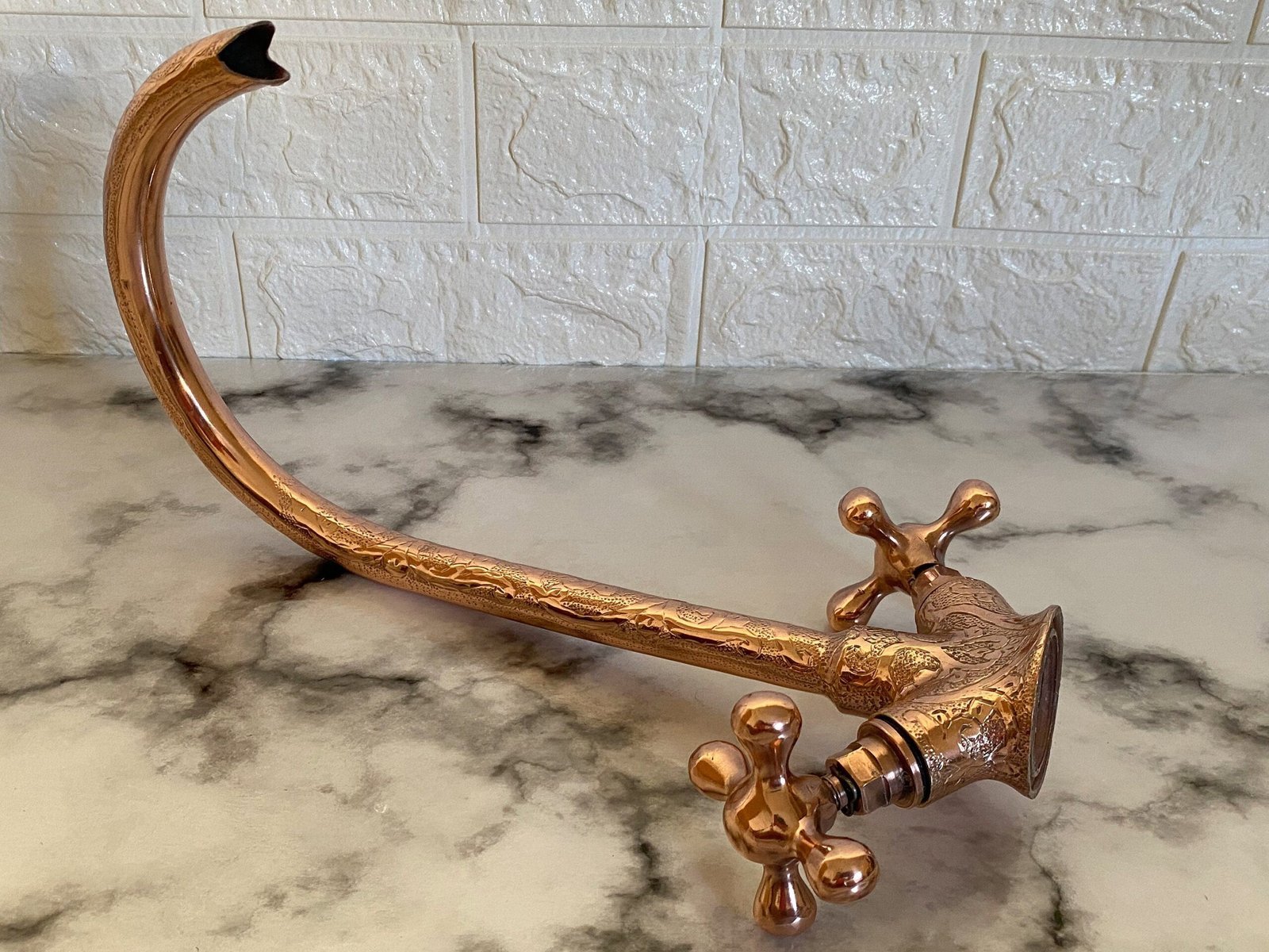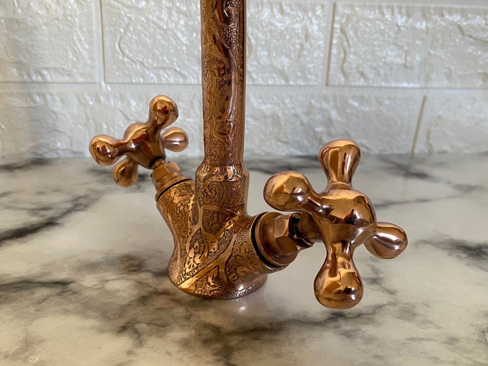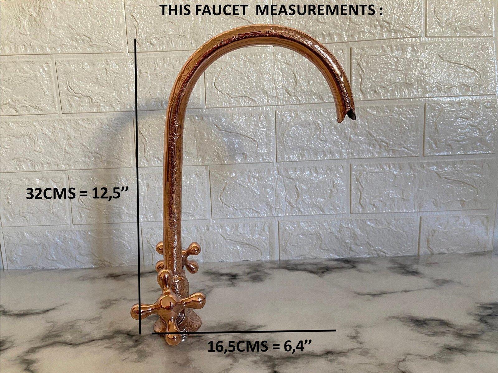 This faucet is 100% handmade of solid unlacquered Copper. It will add an elegant, charming and antique decoration to your space.