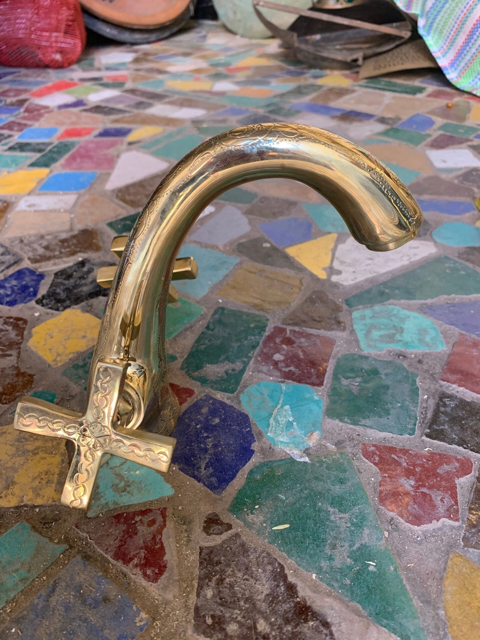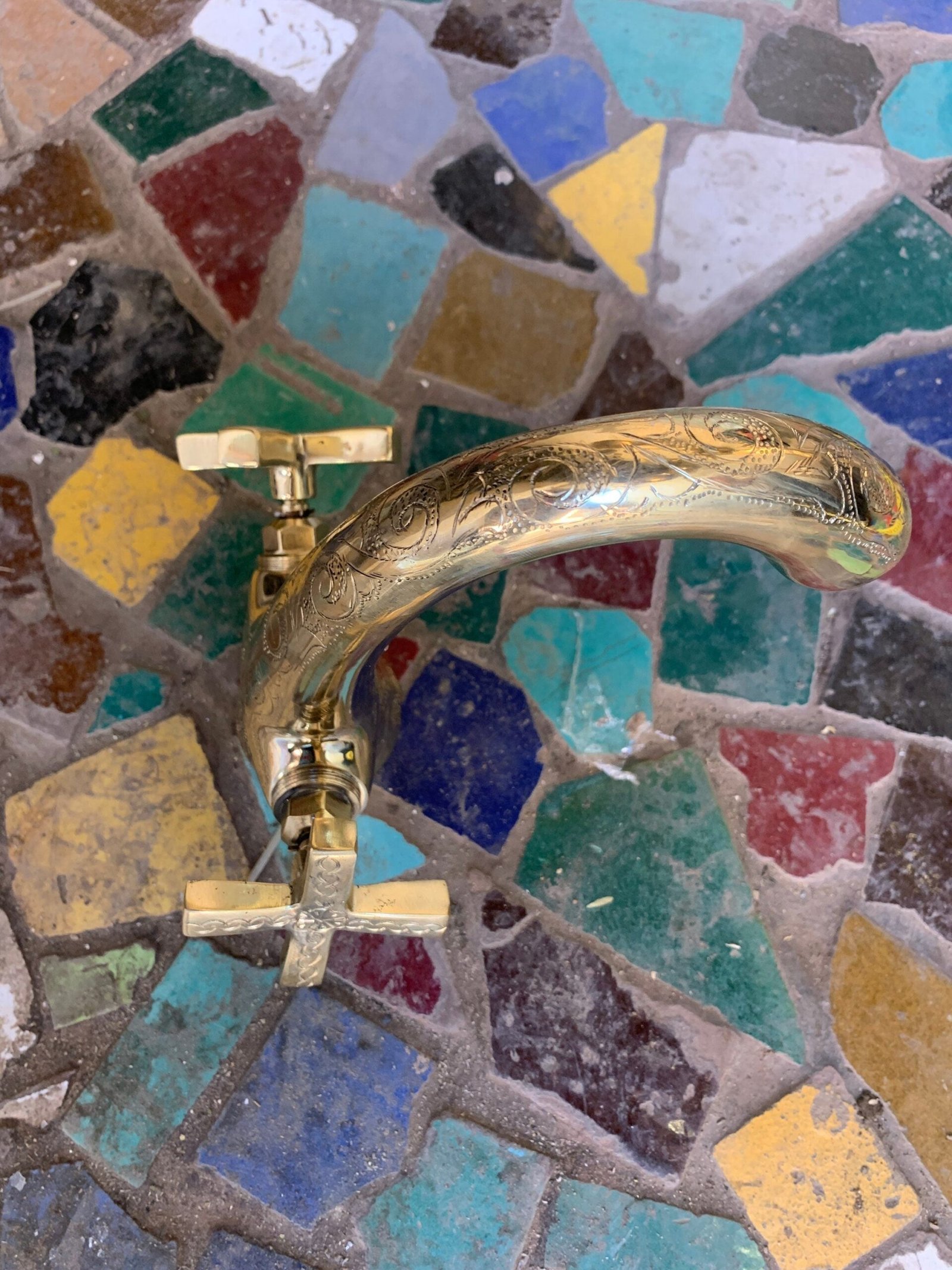 Bathroom Kichen Faucet Hand Engraved Moroccan Brass Gold Color Faucet Tap