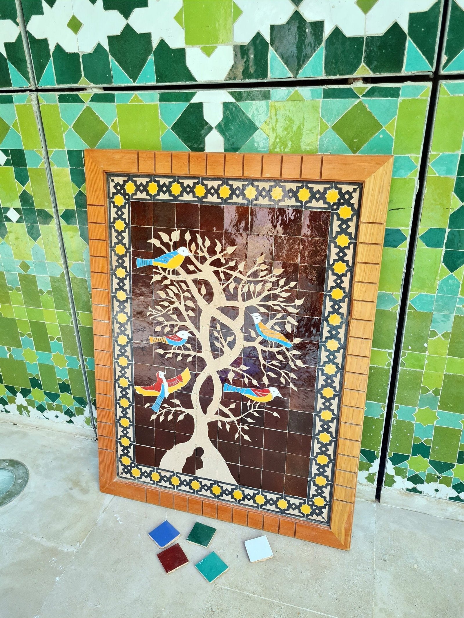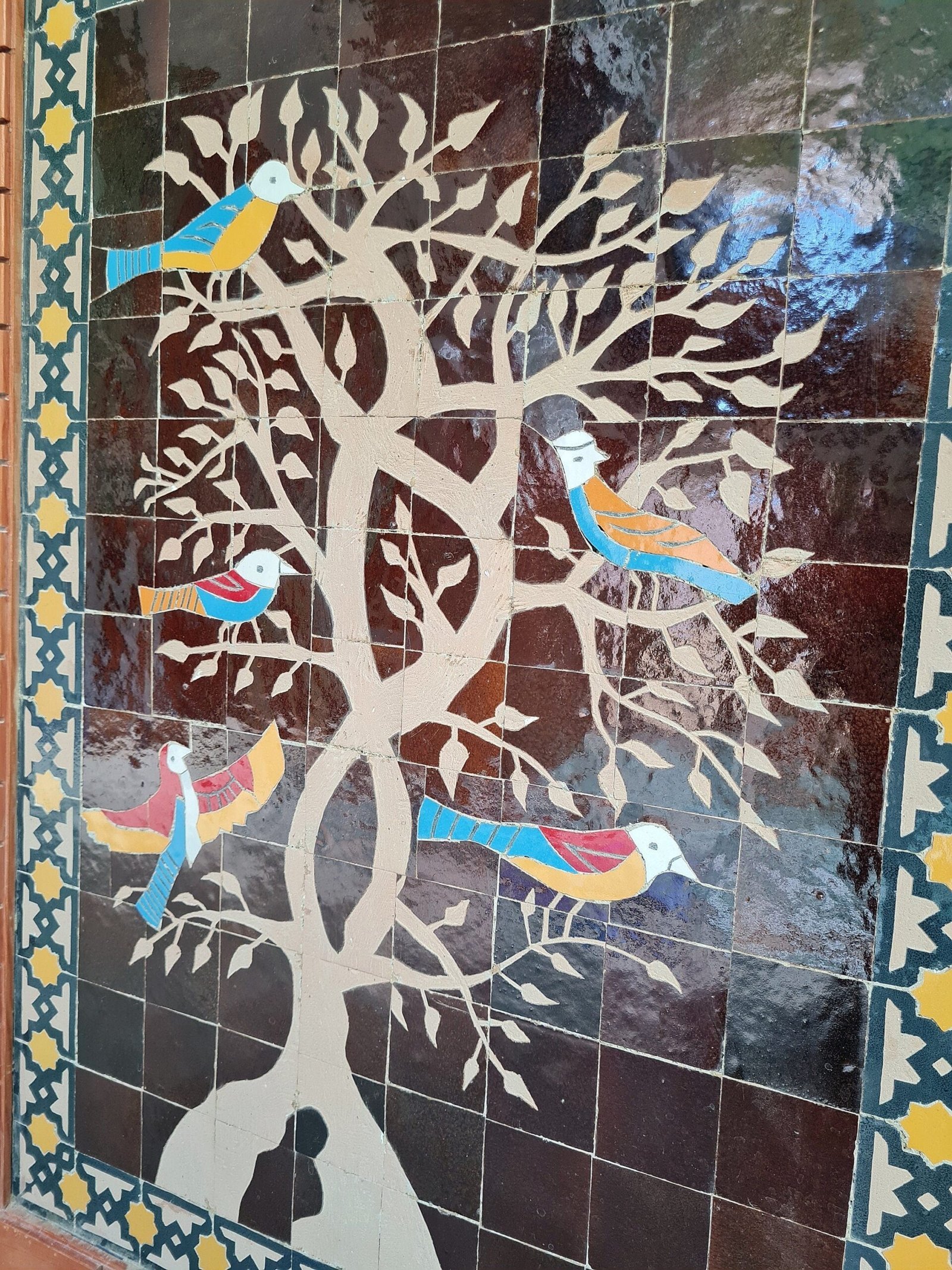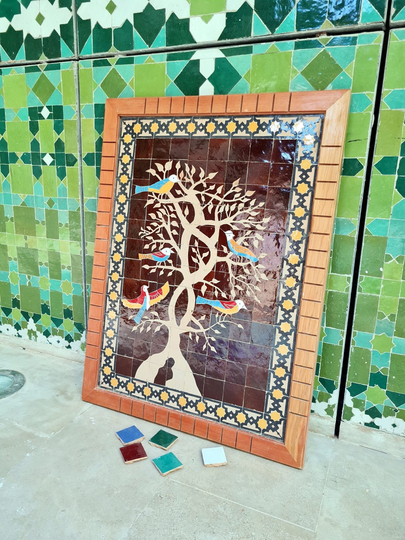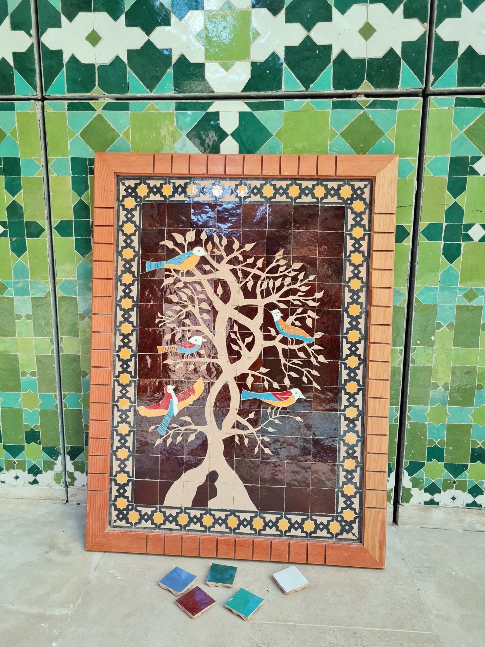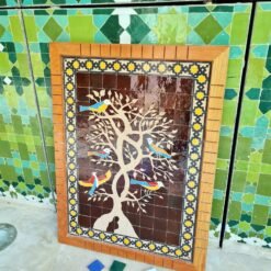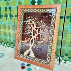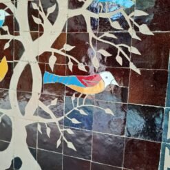 Birds On Engraved Tree Hanging Wall Decor – Mosaic Wall Art – Piece By Piece ART Work – + 300 Tiles – Handmade Wall Mount ART – Wall Decor