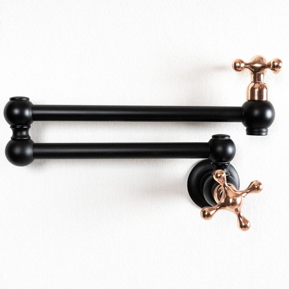 Black Brass Pot Filler Kitchen Faucet With Copper Cross Handles