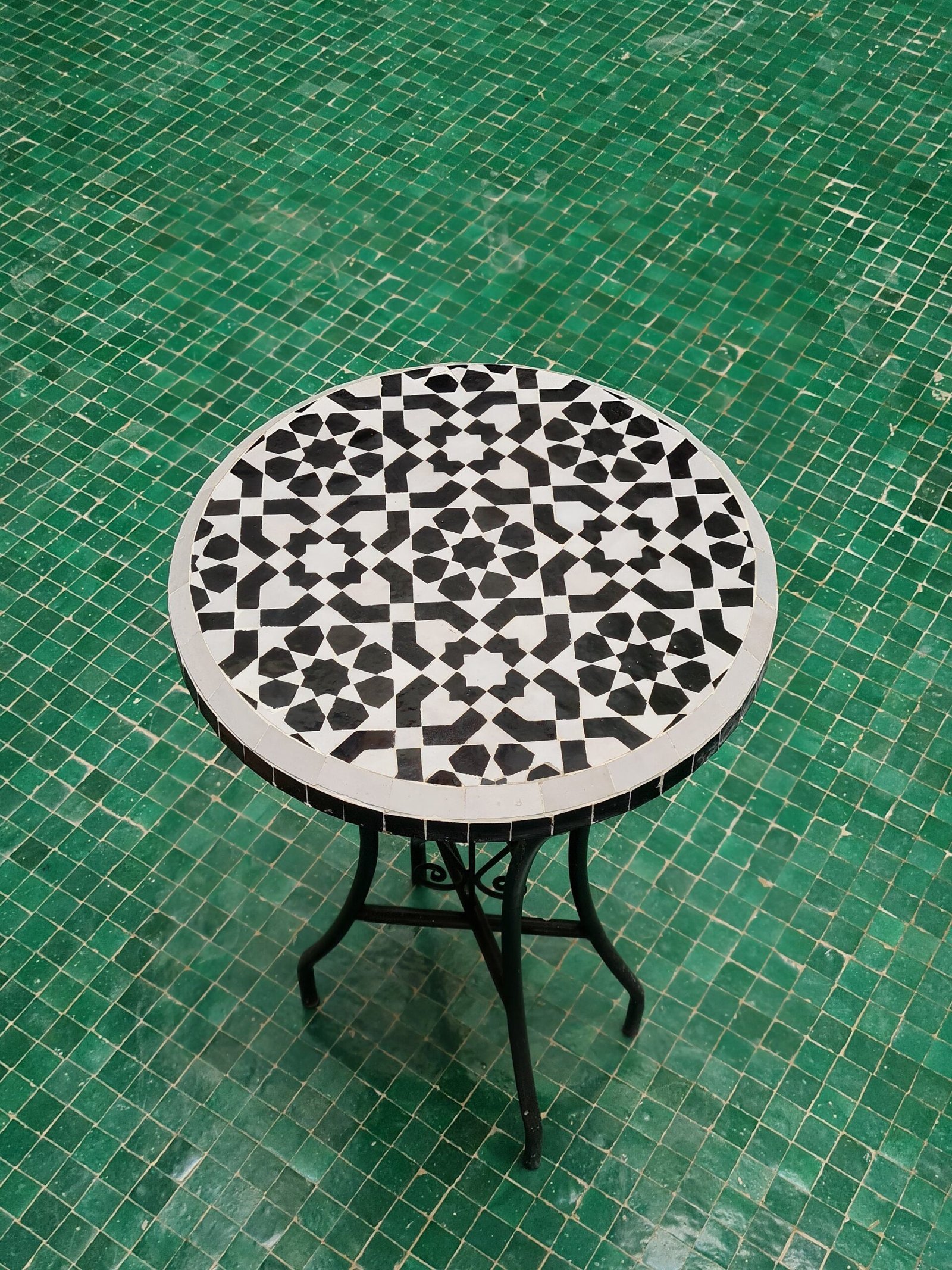 Black & White Zellige Color Table TOP – Mid Century Modern – Outdoor Zellije Table