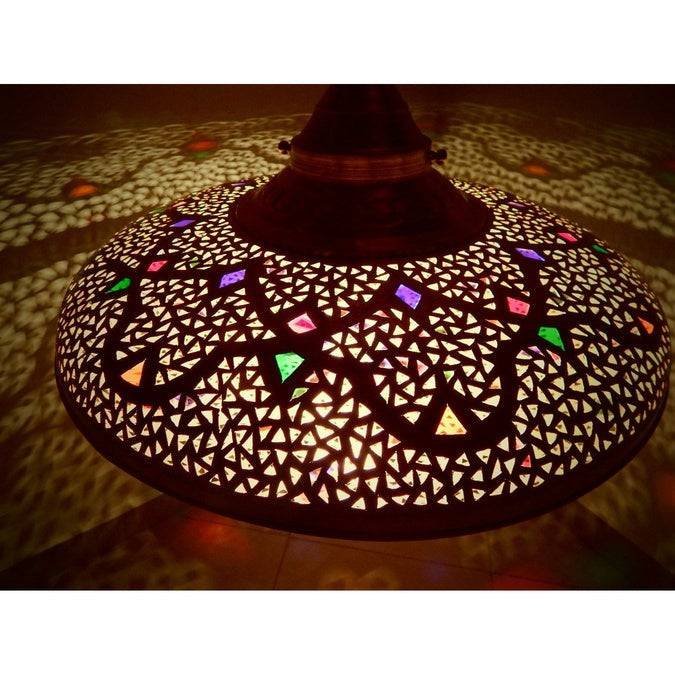 Brass and Glass Unique Design Handmade Ceiling lamp, Exotic Light Patterns, Bring the Moroccan atmosphere to your home.