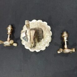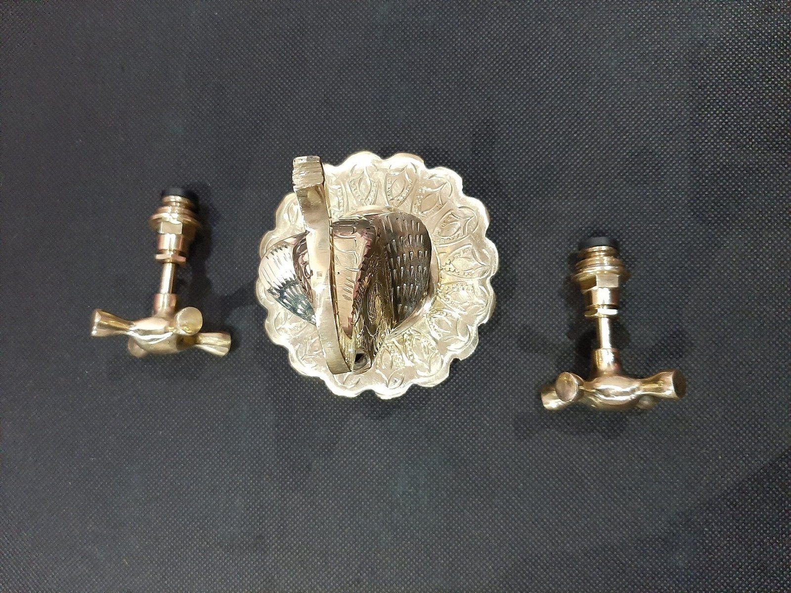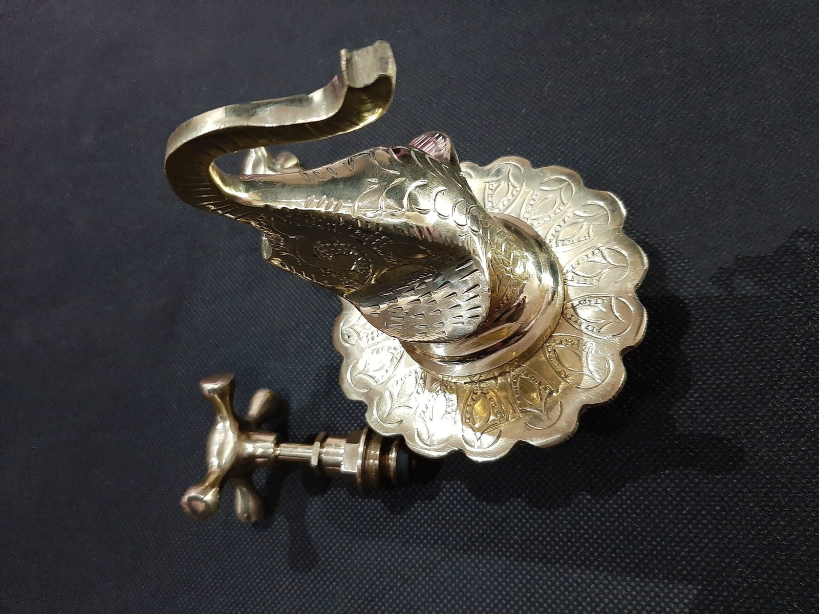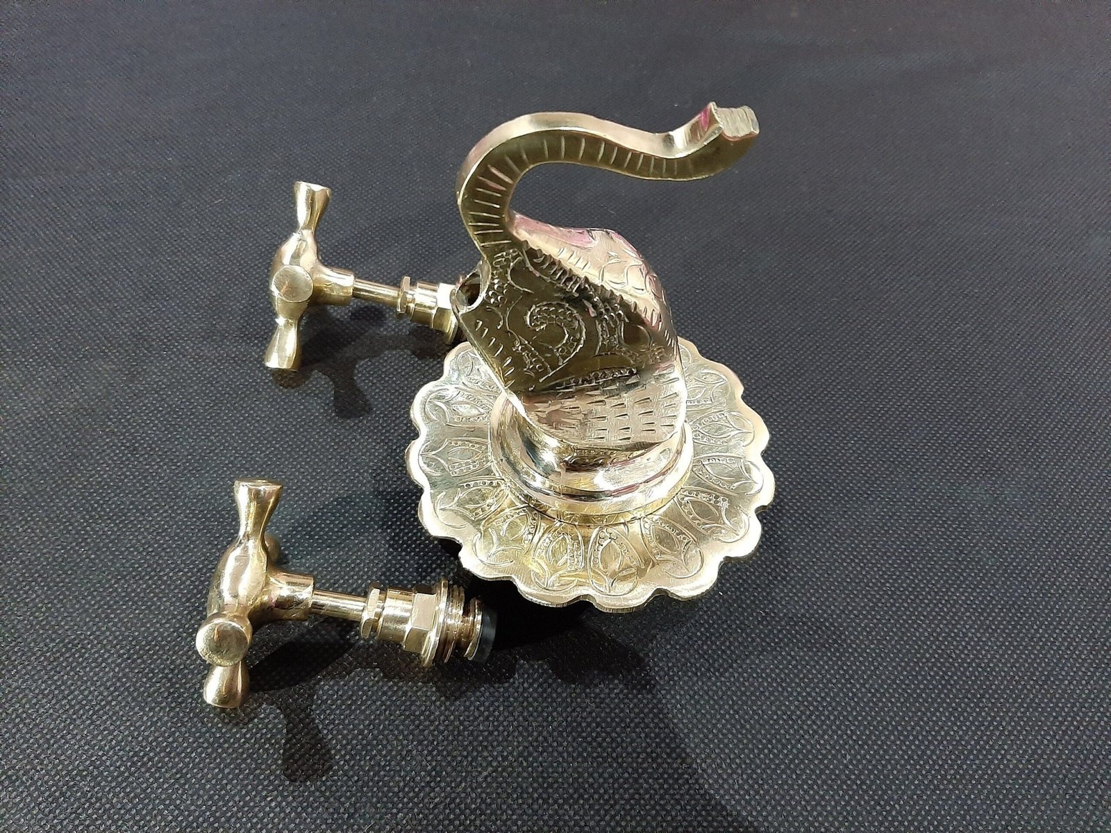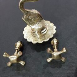 beautifully decorated faucet with the face of an elephant with two handles for cold and hot water