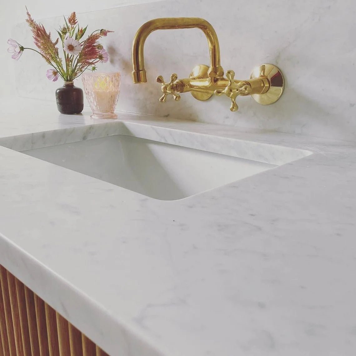 The unlacquered brass faucet will develop a beautiful patina over time for the fans of vintage styles.