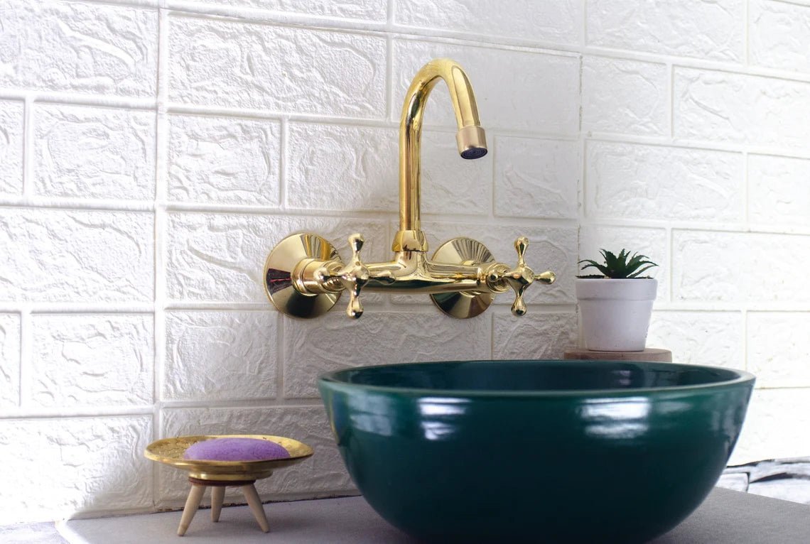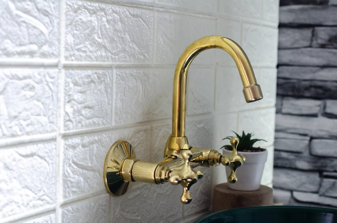 The unlacquered brass faucet will develop a beautiful patina over time for the fans of vintage styles.