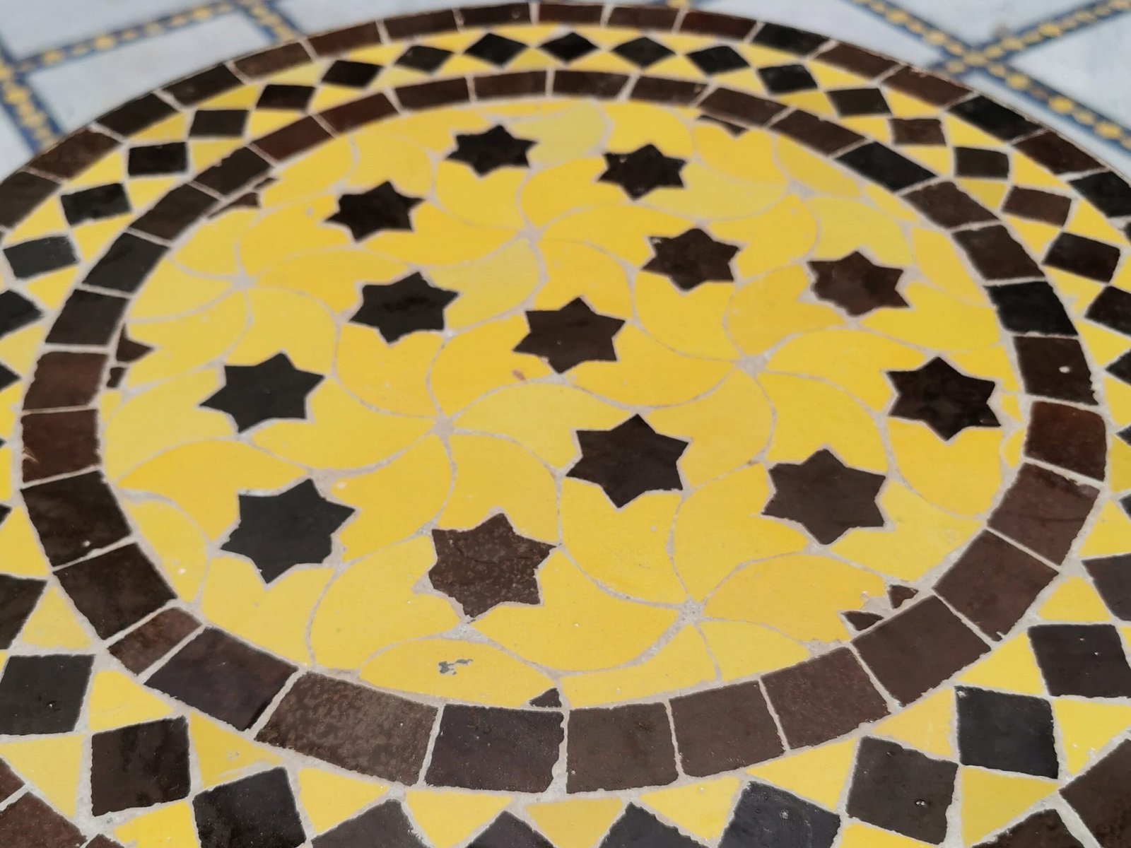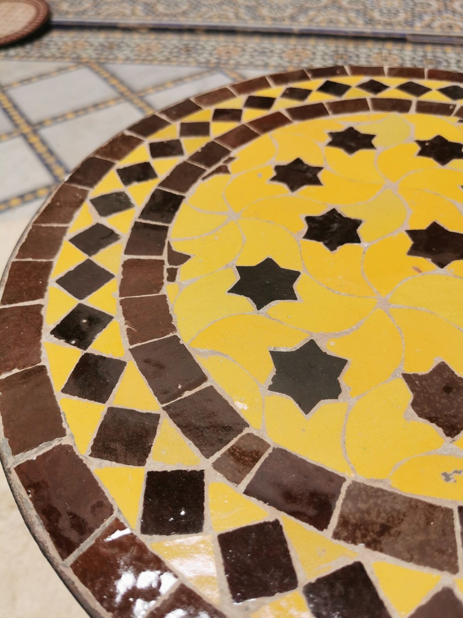Then we use a material called ” La resin ” or ” cola sima” and we let them dry. After that we flip them to the front to see the design of the Zellige. That is the workmanship of Clay in the City of Fes.
