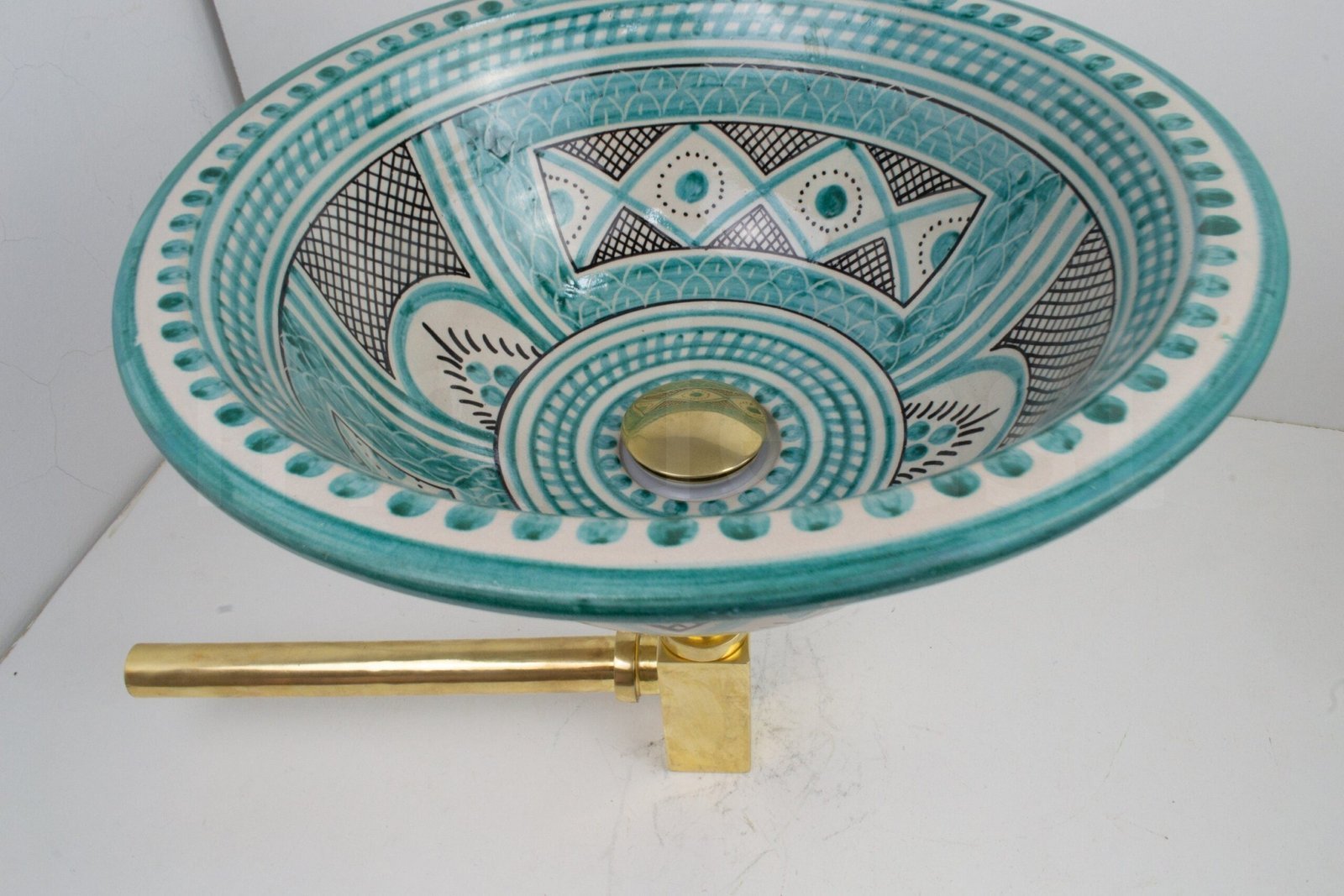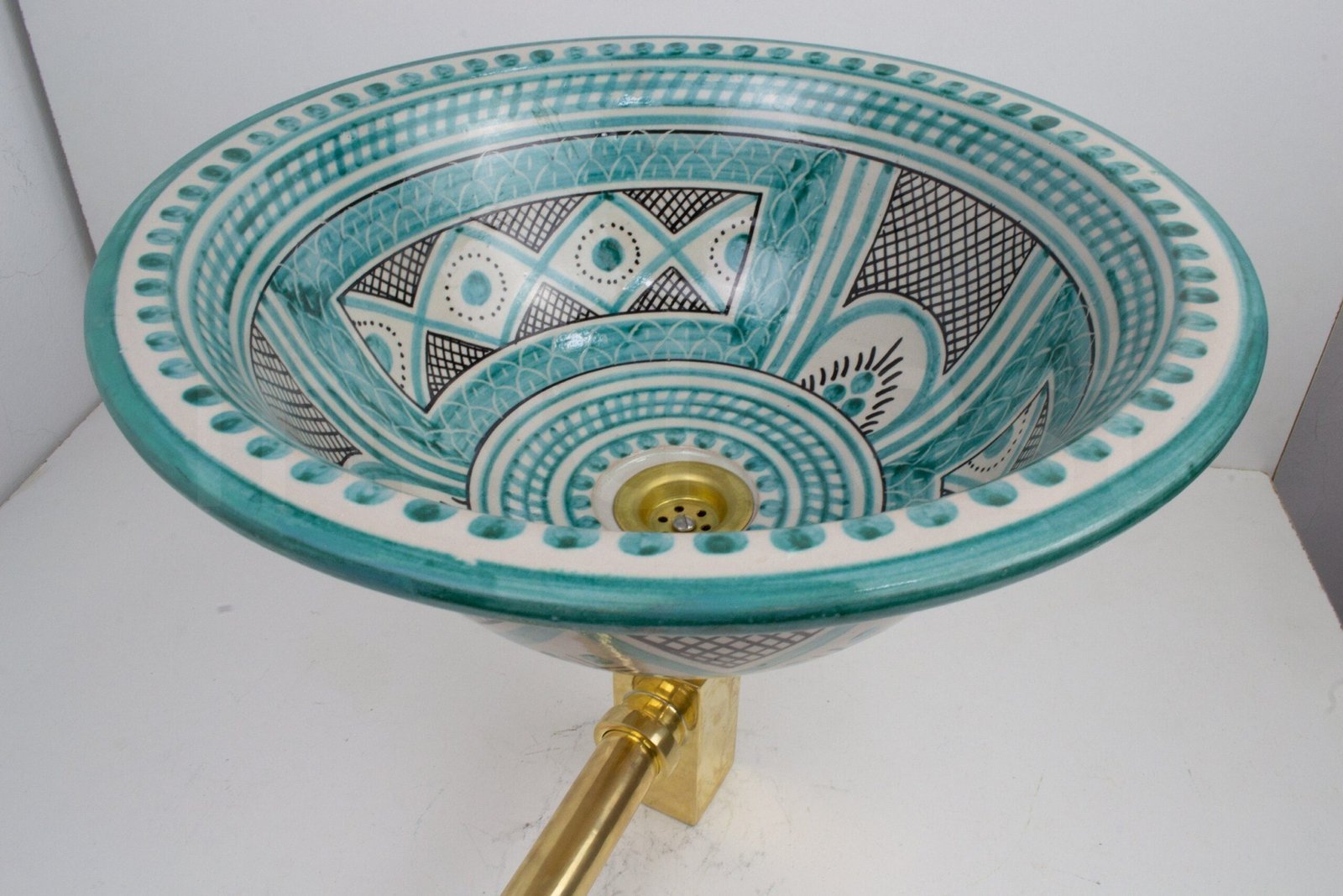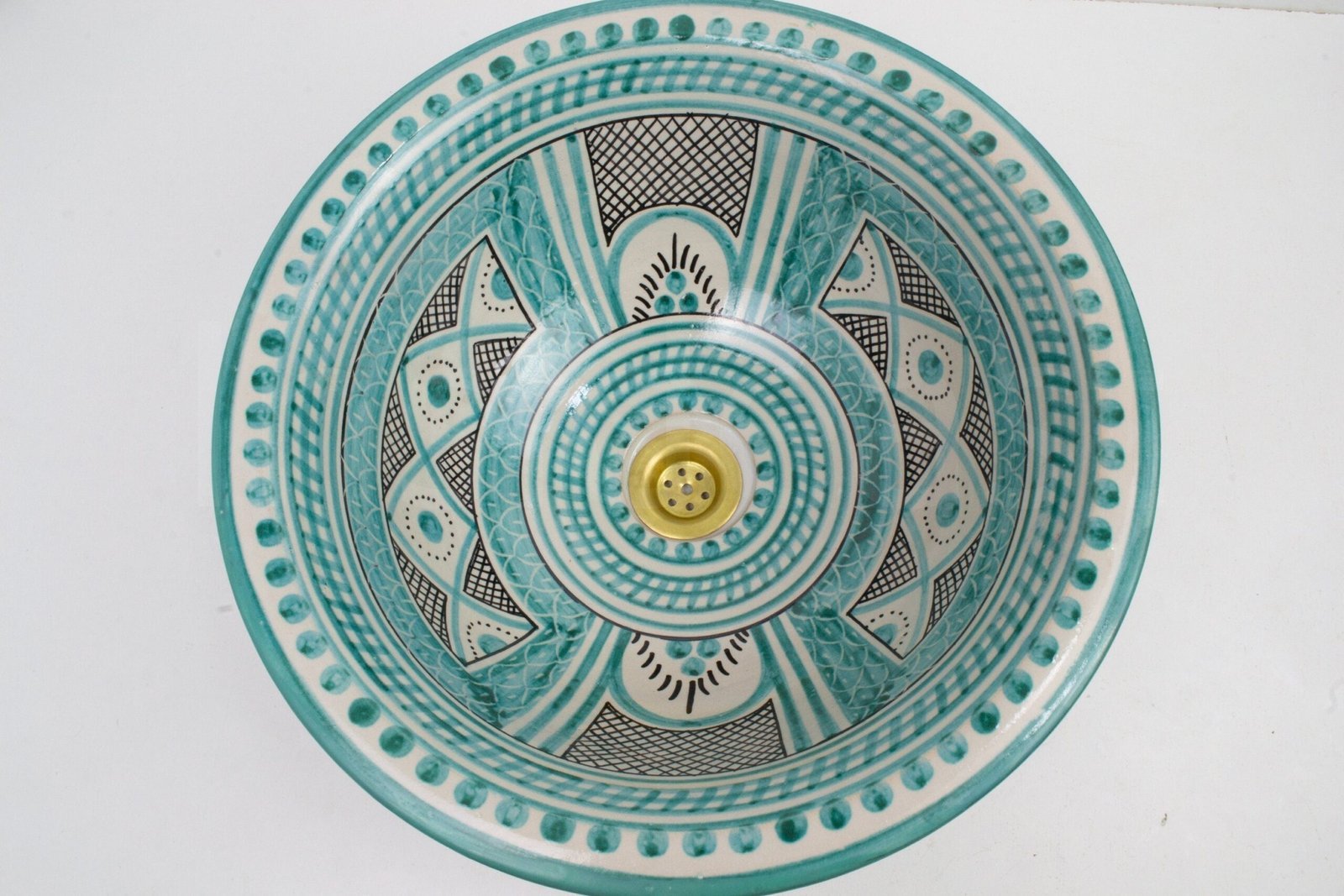 Ceramic Handmade Table Top vessel Sink Hand Painted Moroccan Washbasin for Bathroom