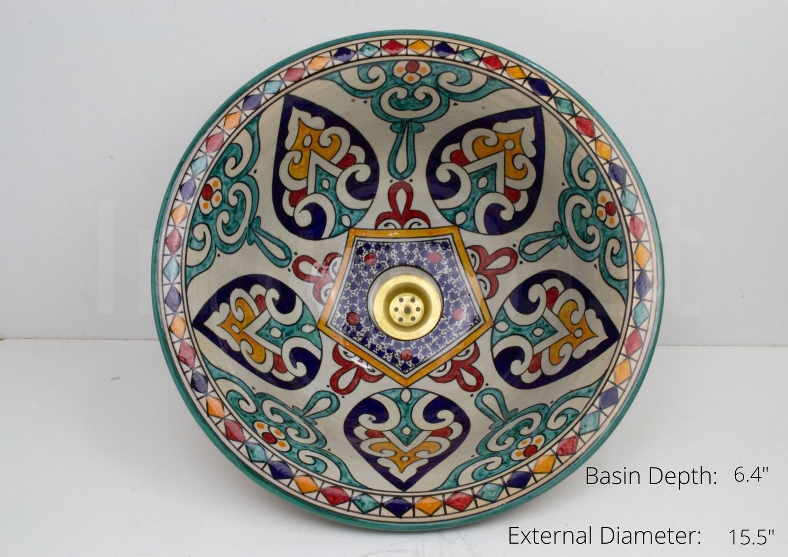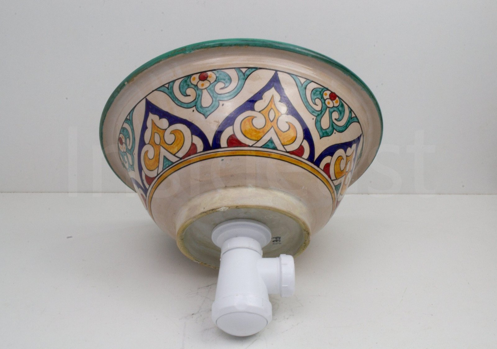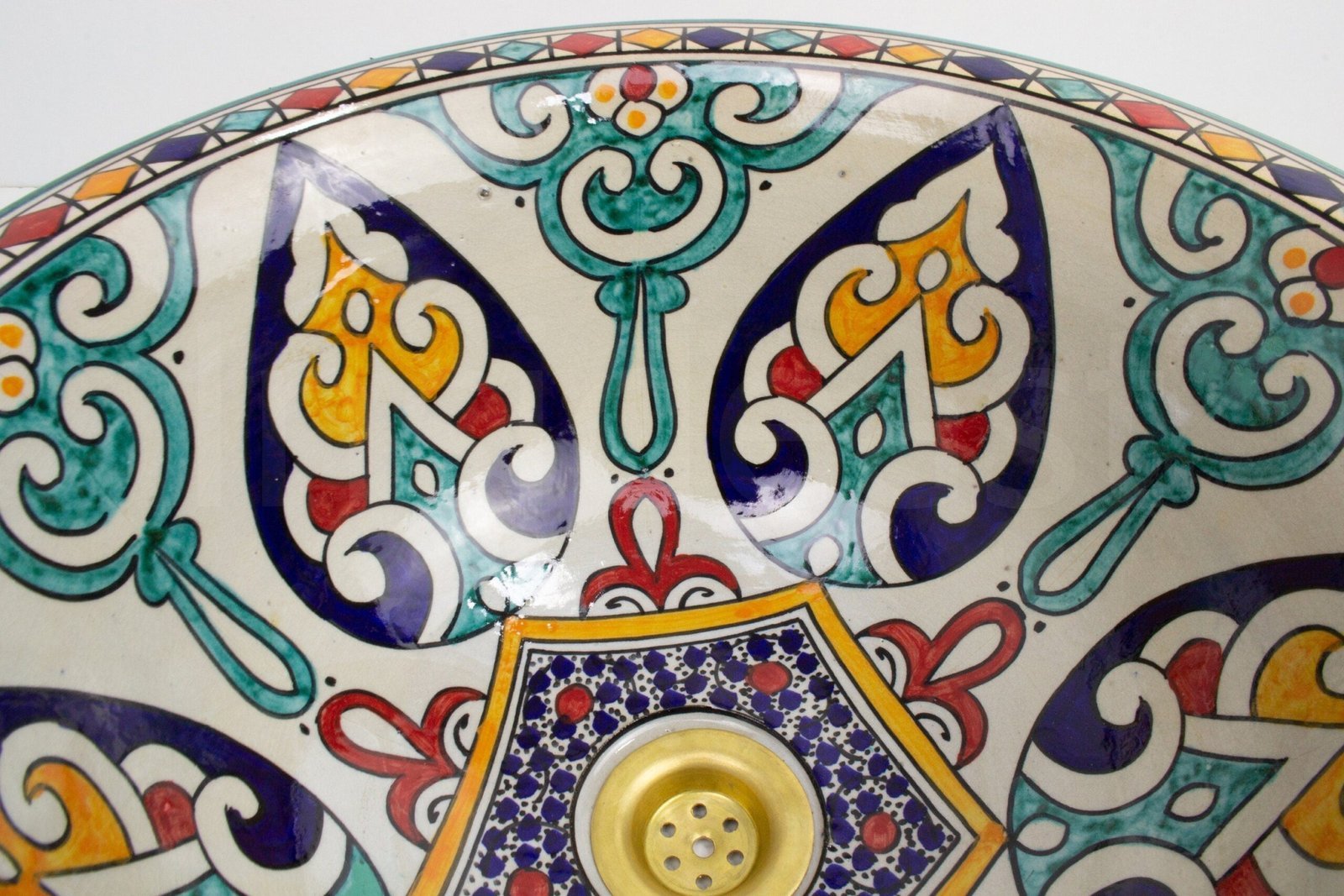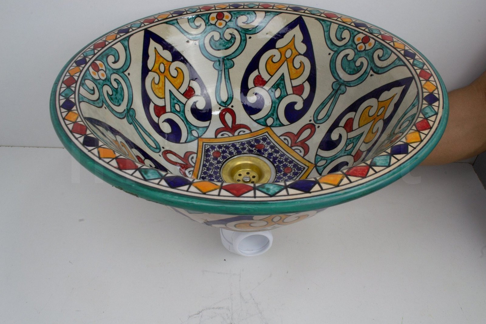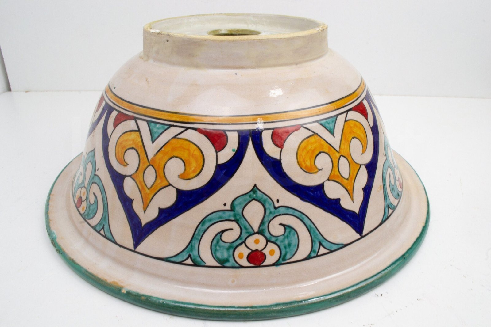 Ceramic handmade table Top Vessel Sink Handmade Hand Painted by an Artisan Potter in the city of Fez. For people who are looking for quality and dazzling decorations.