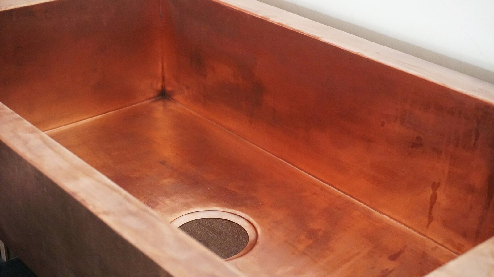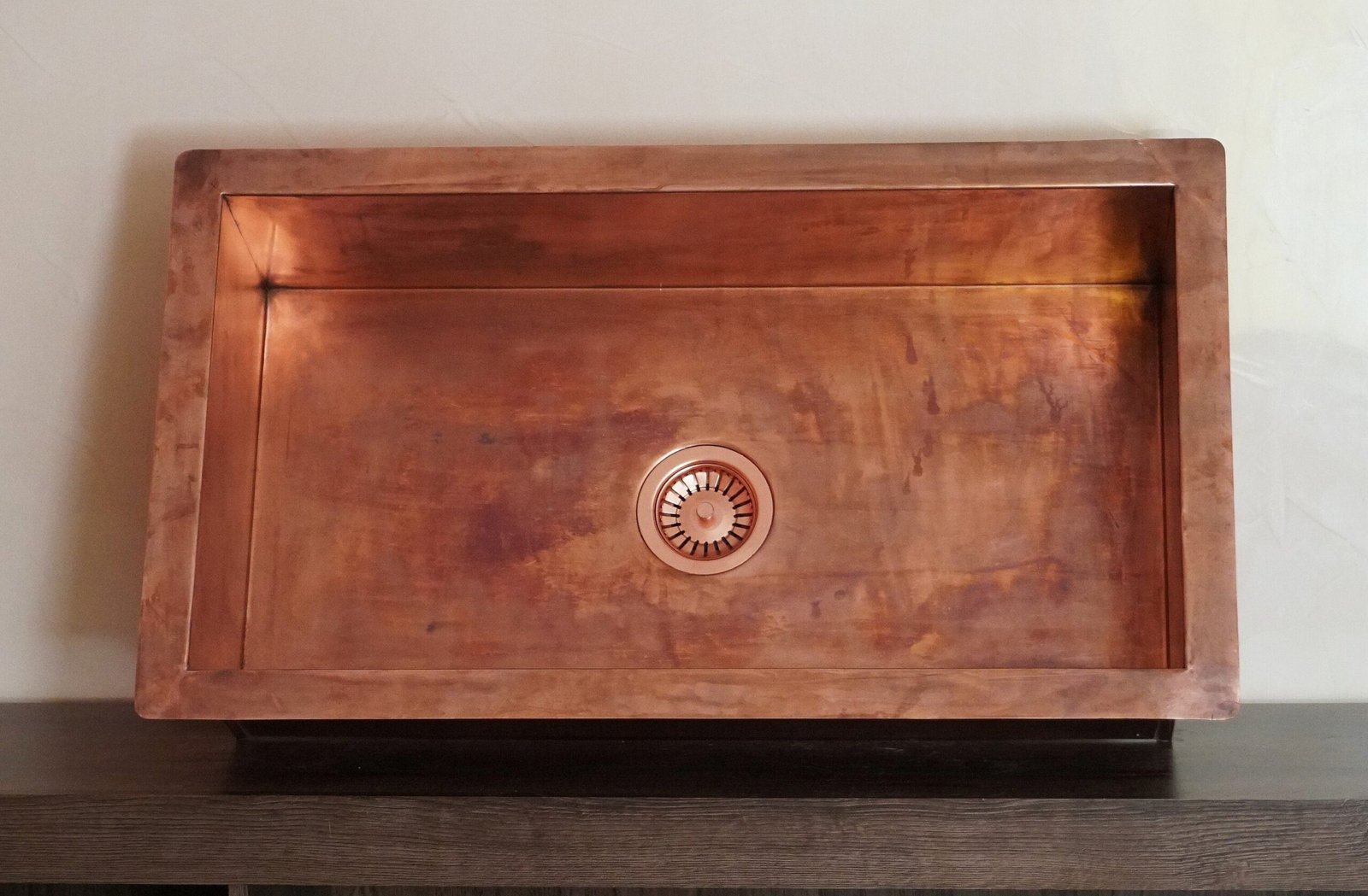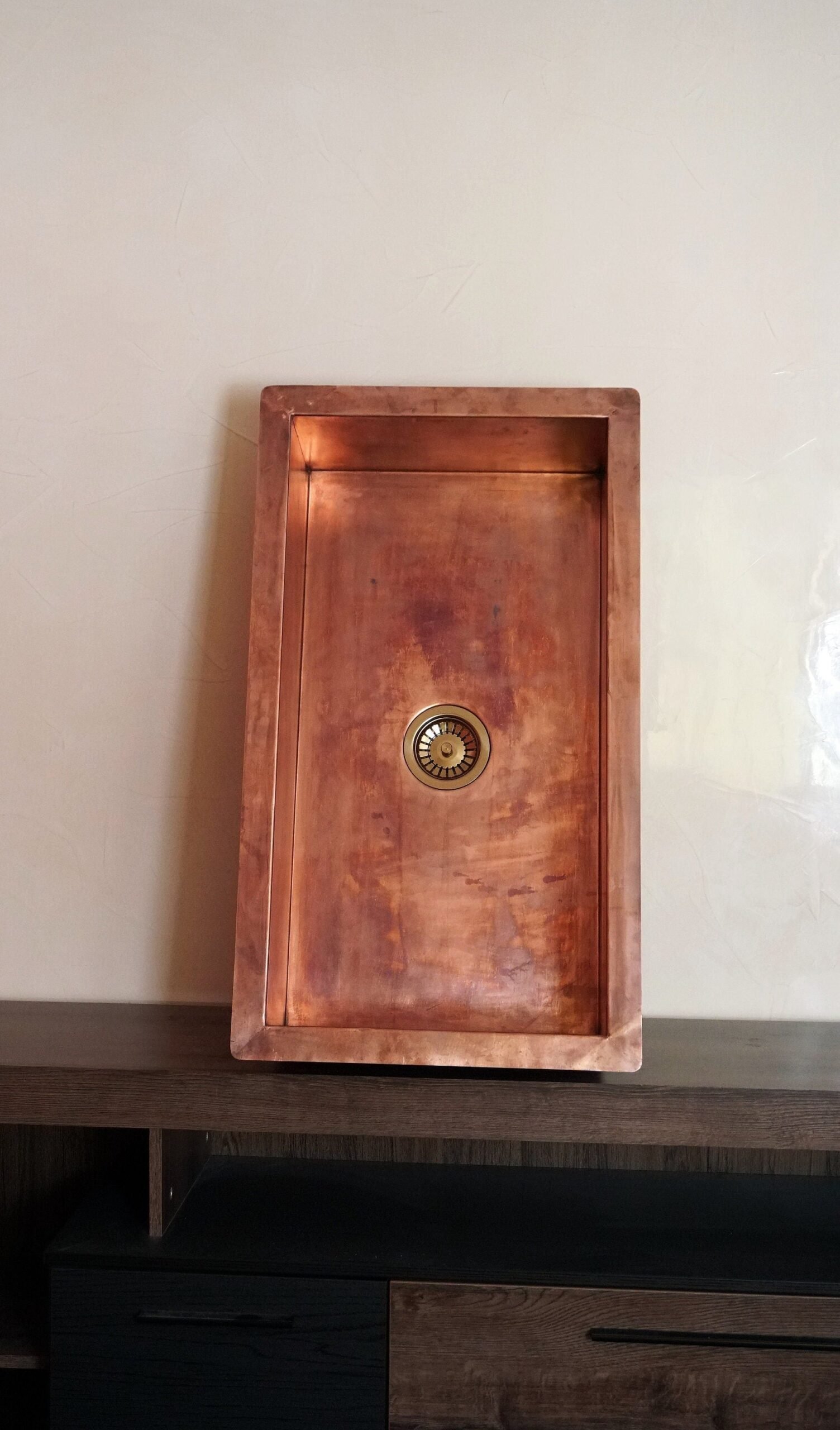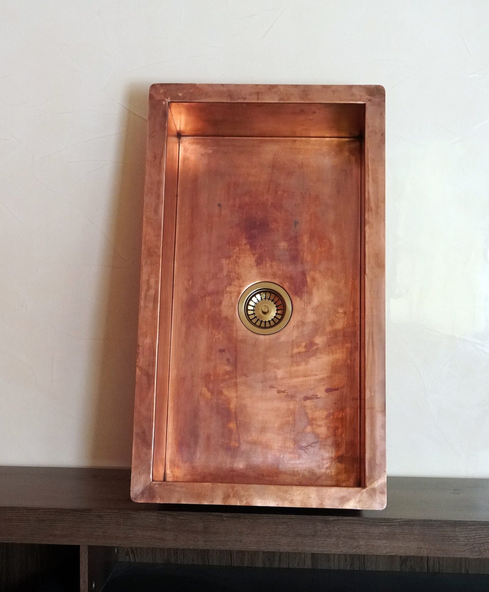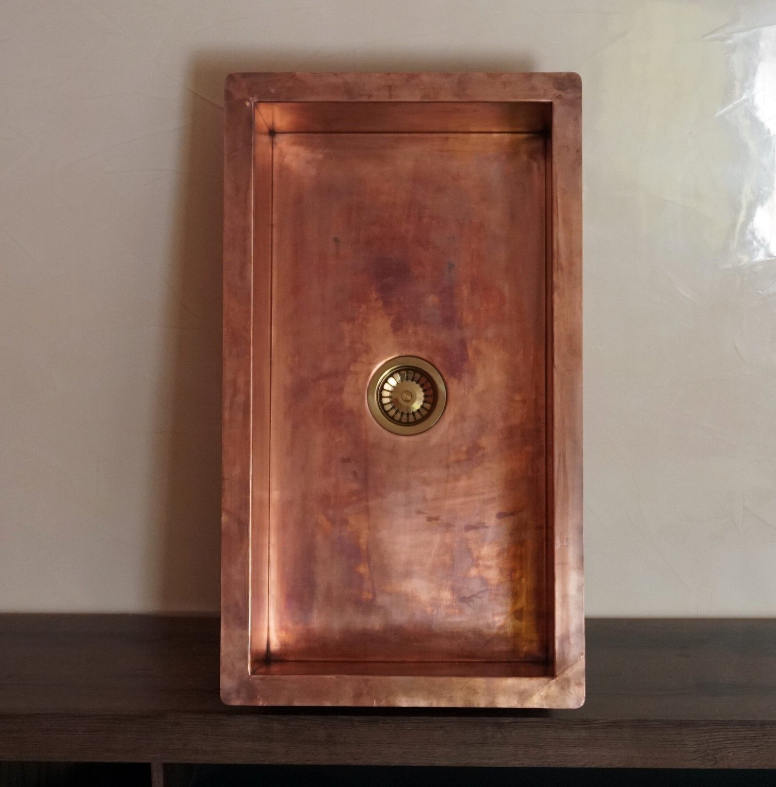 Custom Made 12″ x 14″ x 8″ Under mount Copper Sink With Copper Drain