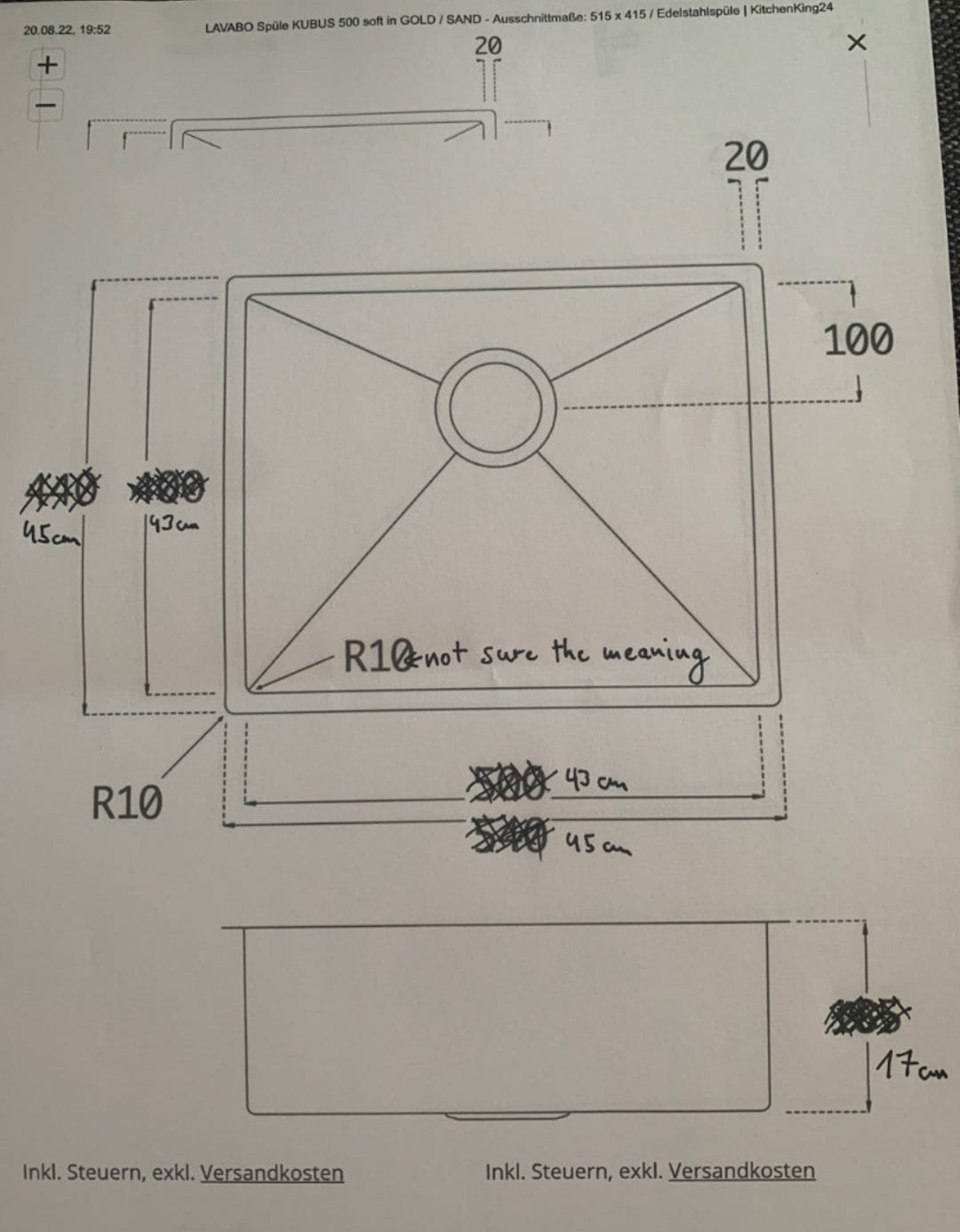 – Sink is constructed of thick brass