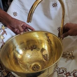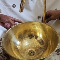 hikwa’s Premium Brass Sink allows you to impress your guests and partake in delight each time you step inside your bathroom. This sink makes a statement on its own showcasing superior engineering. The sink is made of pure copper brass material and is gold finished hammered finish giving it a dramatic sturdy appearance.