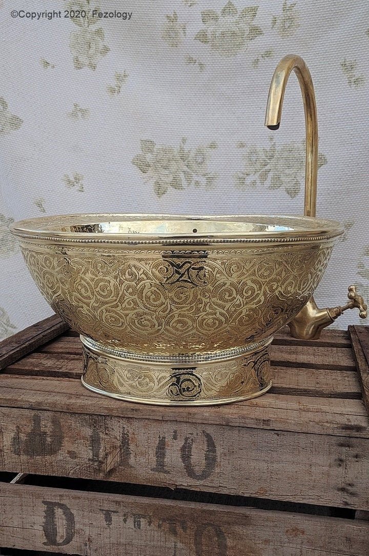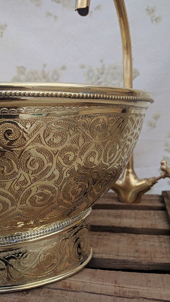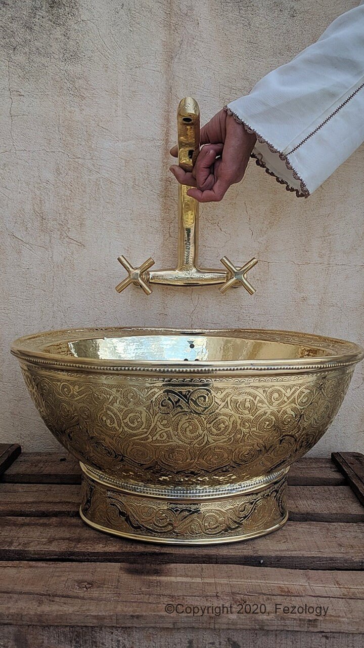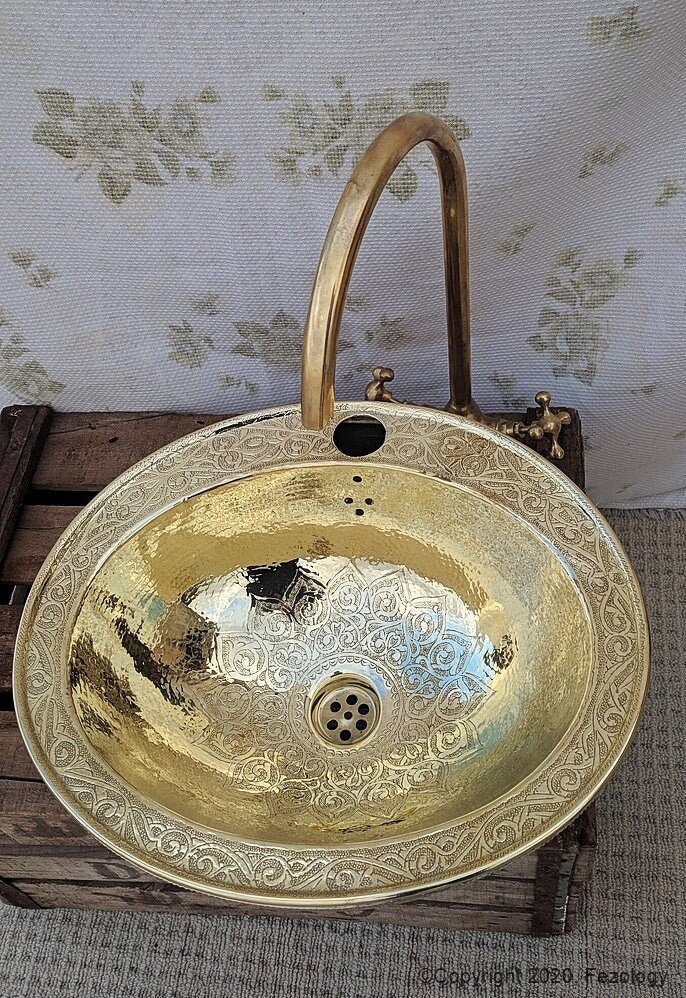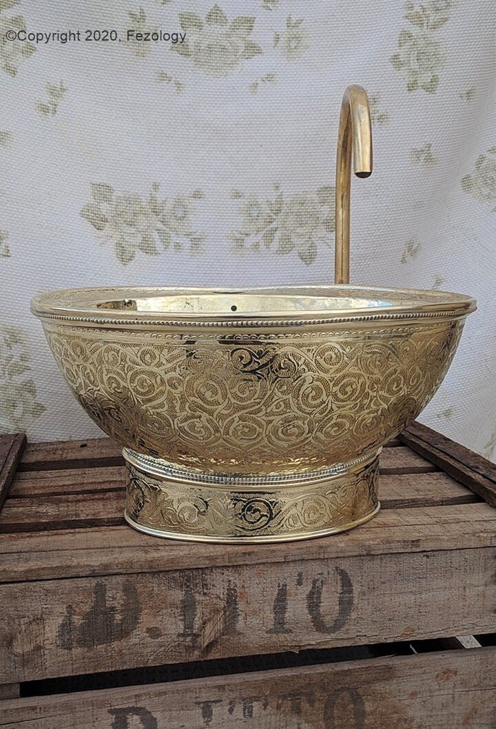 ; Hand hammered & Engraved sink upgrades your bath kitchen or bar area