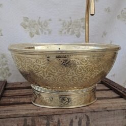 hikwa’s Premium Brass Sink allows you to impress your guests and partake in delight each time you step inside your bathroom. This sink makes a statement on its own showcasing superior engineering. The sink is made of pure copper brass material and is gold finished hammered finish giving it a dramatic sturdy appearance.