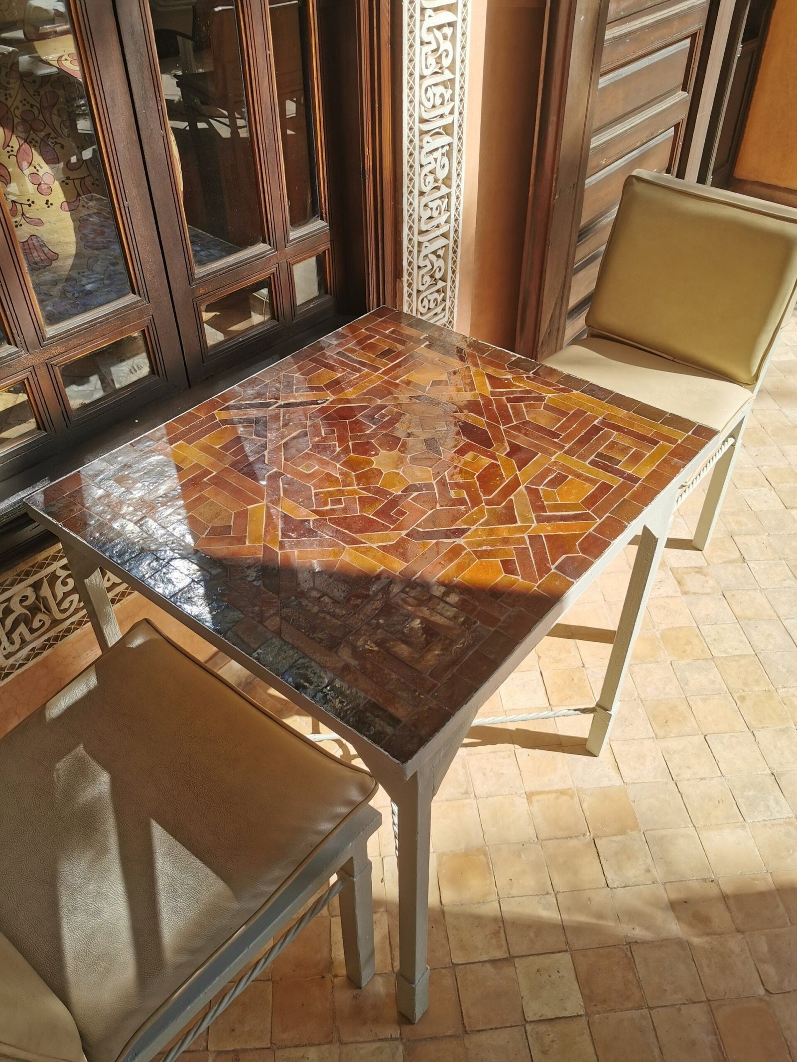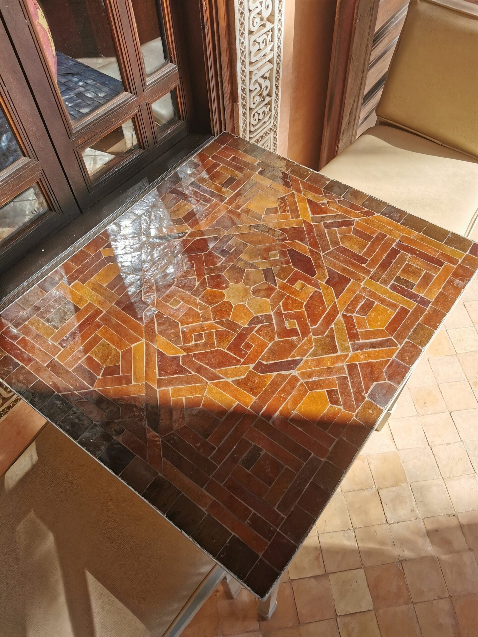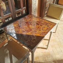 CUSTOMIZABLE Brown Zellije Mosaic SQUARE Table – Mosaic Table Art – Mid Century Table Style – Handmade Dining Table