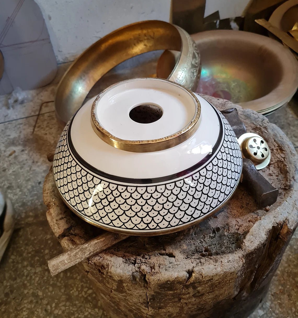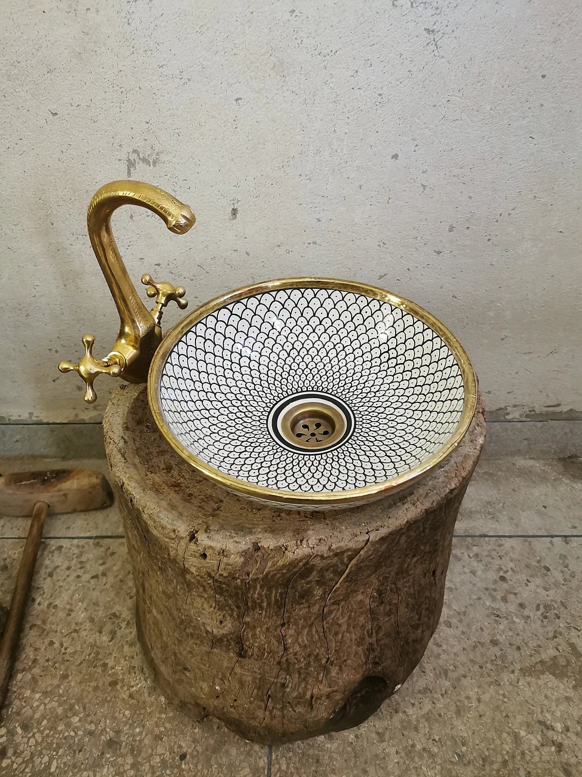 customizable brushed brass rim bathroom sink – brass & ceramic bathroom vessel – handmade basin