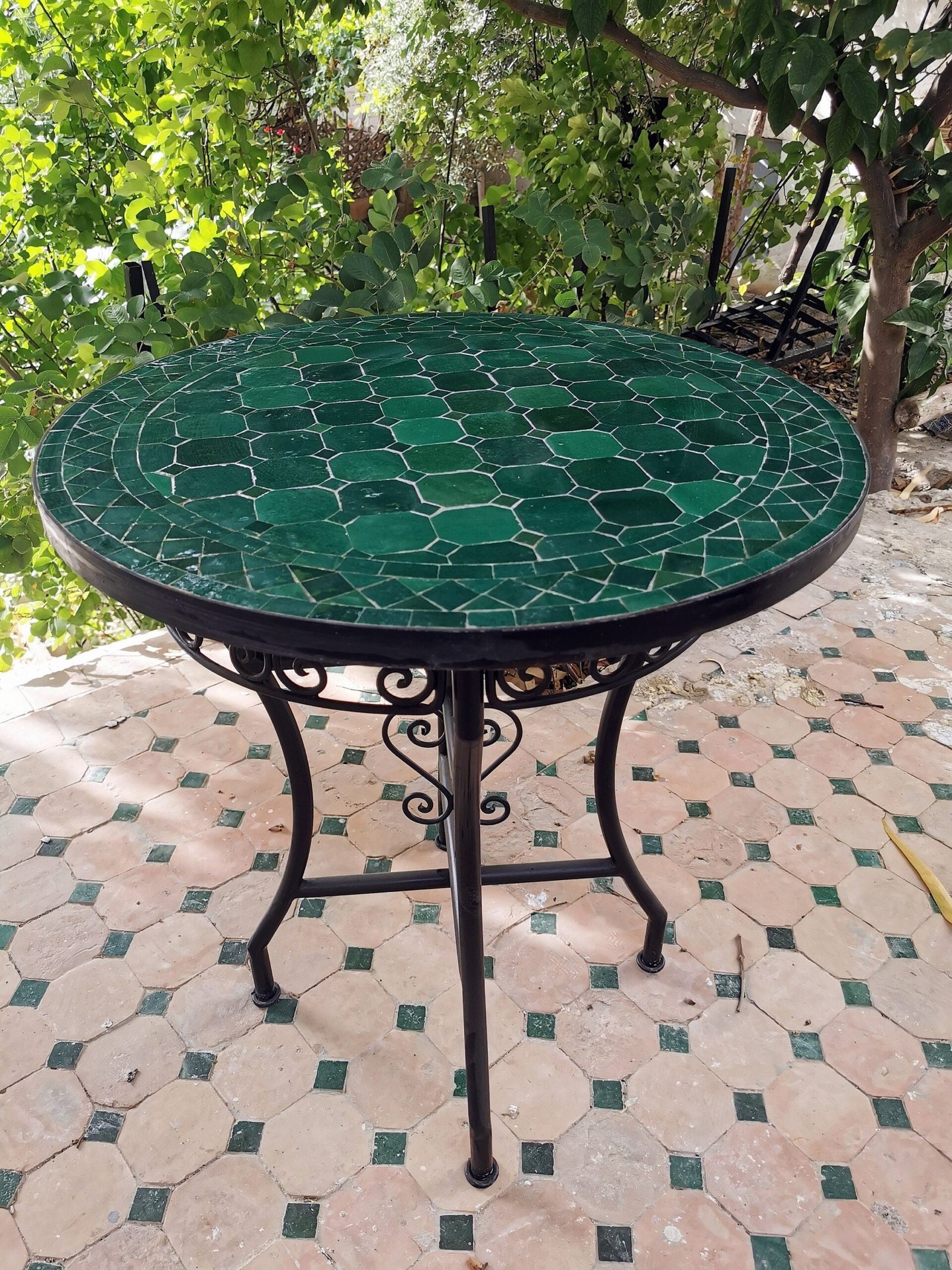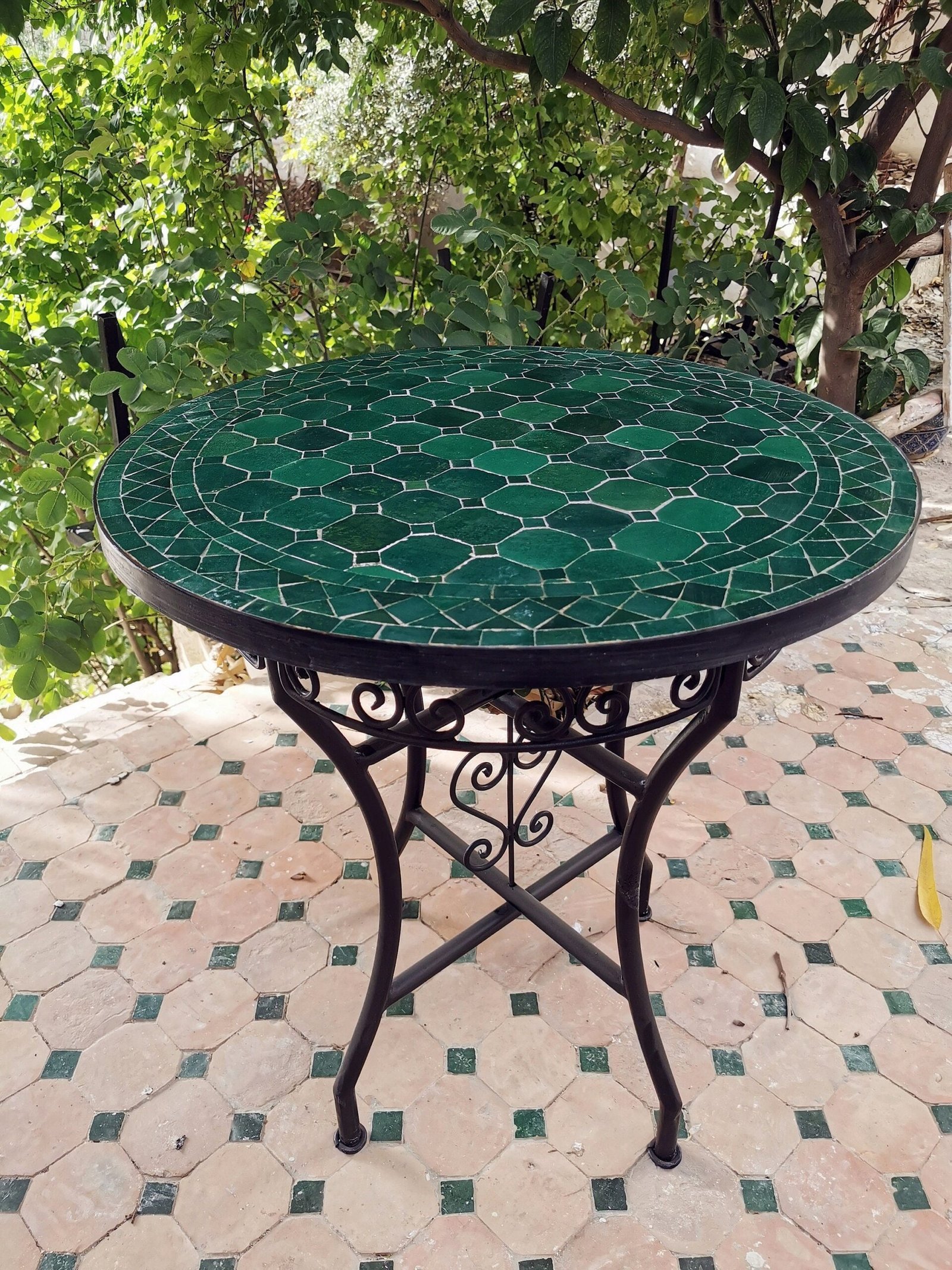 CUSTOMIZABLE Emerald Green Mosaic Table – Mosaic Table Art – Mid Century Mosaic Table