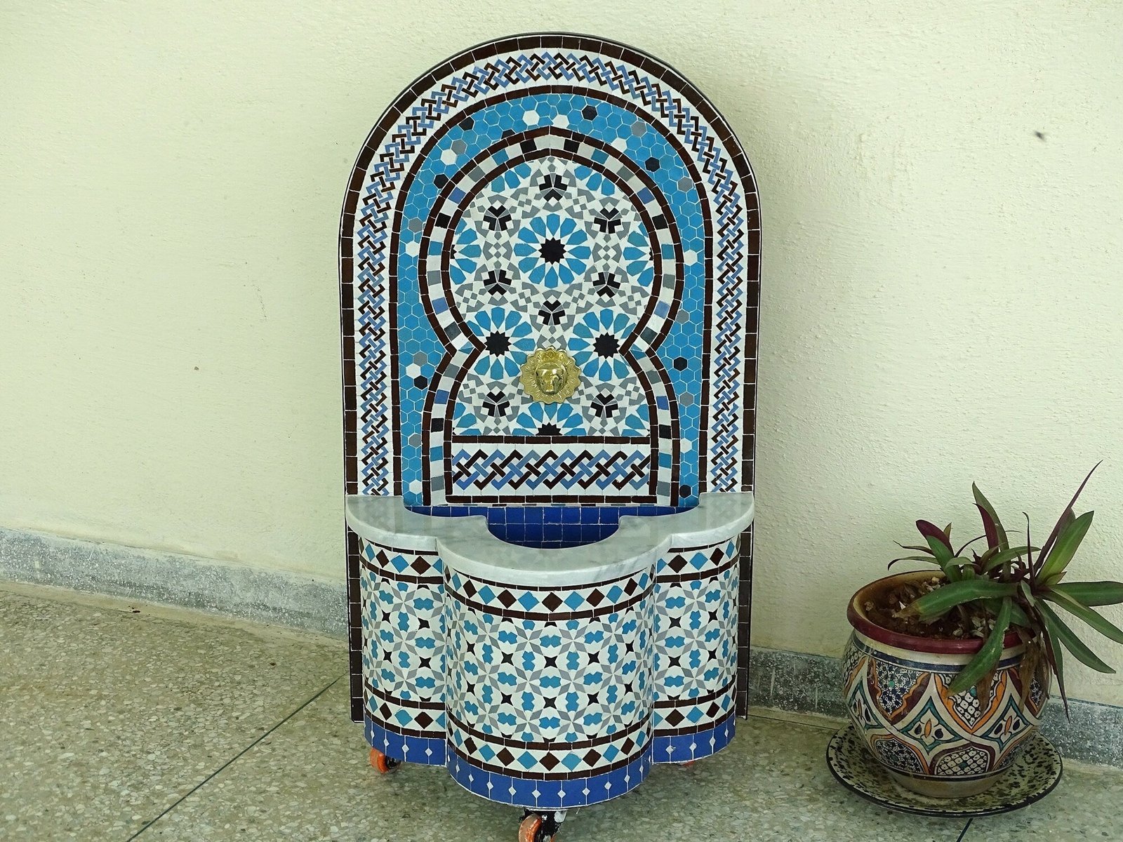 CUSTOMIZABLE Garden Patio Rustic Outdoor Wall Water Fountain – Mosaic Artwork – Handmade Wall Fountain
