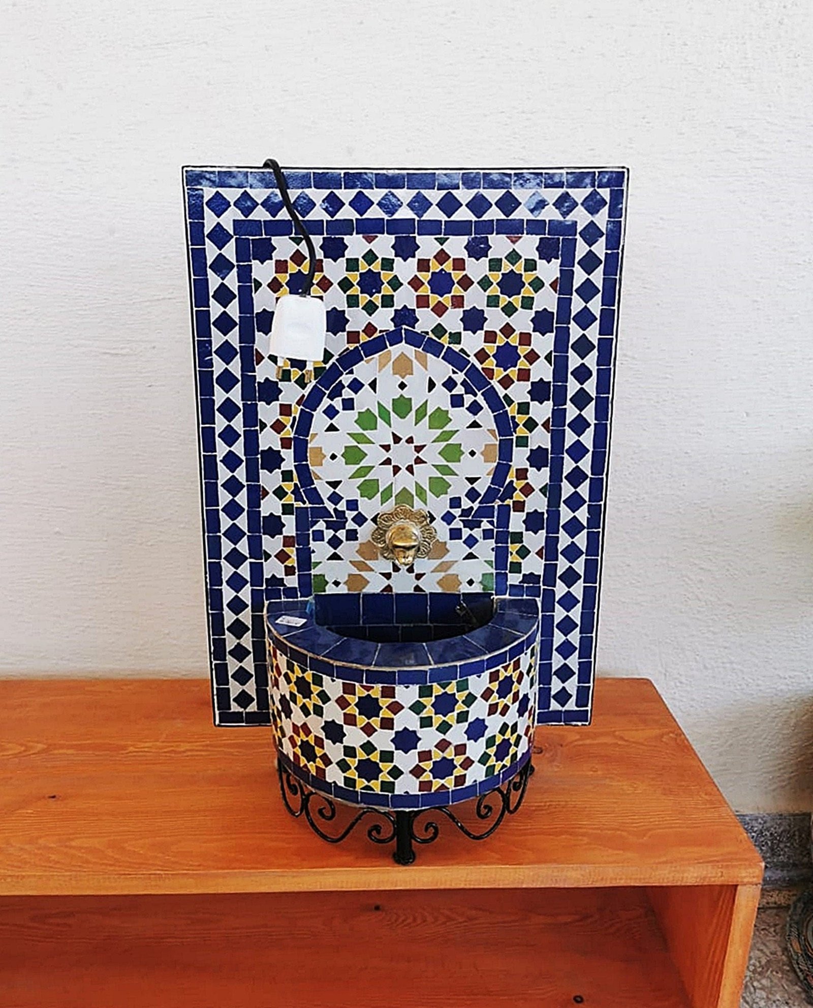 this amazing traditional Moroccan Fountain was handcrafted by A professional worker, it represents the cultural diversity of Moroccan handcrafts and that is because of its design, material and the colors used at the surface of the table, the height of this amazing piece of art is 55 cm with a width of 40 cm and a possibility of personal customization. by obtaining such objects you would be helping a dying craft to flourish again so that contact between the past and the present would never die not mentioning the happiness it would bring to poor workers on fields like this .