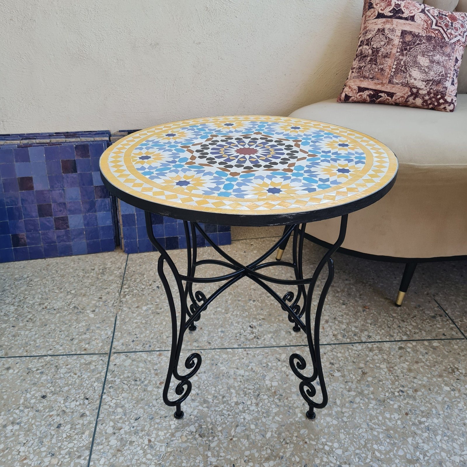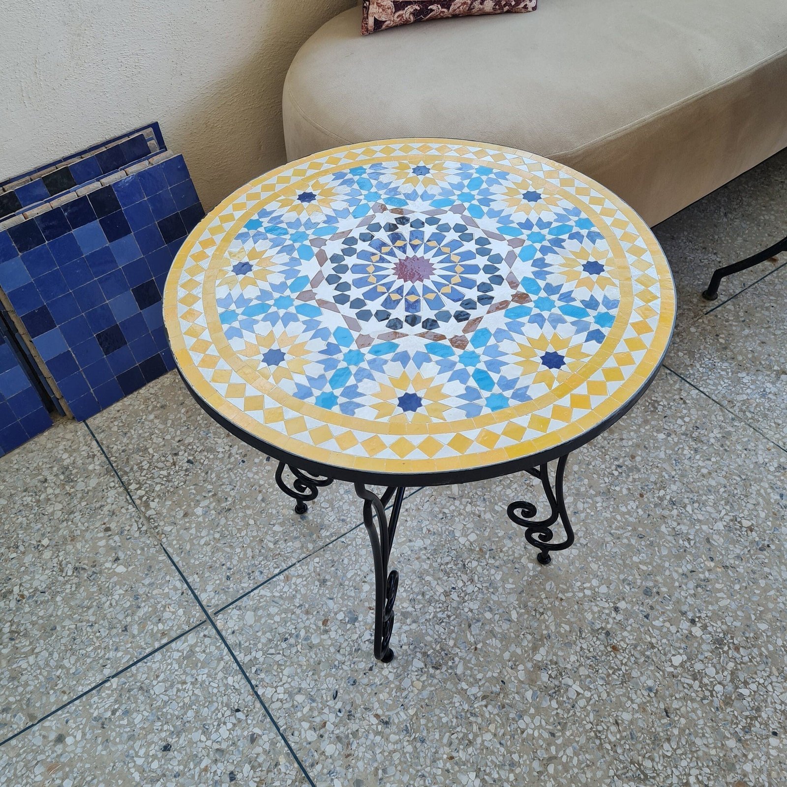 this amazing traditional Moroccan table was handcrafted by A professional worker, it represents the cultural diversity of Moroccan handcrafts and that is because of its design, material and the colors used at the surface of the table. by obtaining such objects you would be helping a dying craft to flourish again so that contact between the past and the present would never die not mentioning the happiness it would bring to poor workers on fields like this .