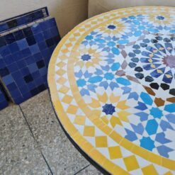 Then we use a material called ” La resin ” or ” cola sima” and we let them dry. After that we flip them to the front to see the design of the Zellige. That is the workmanship of Clay in the City of Fes.