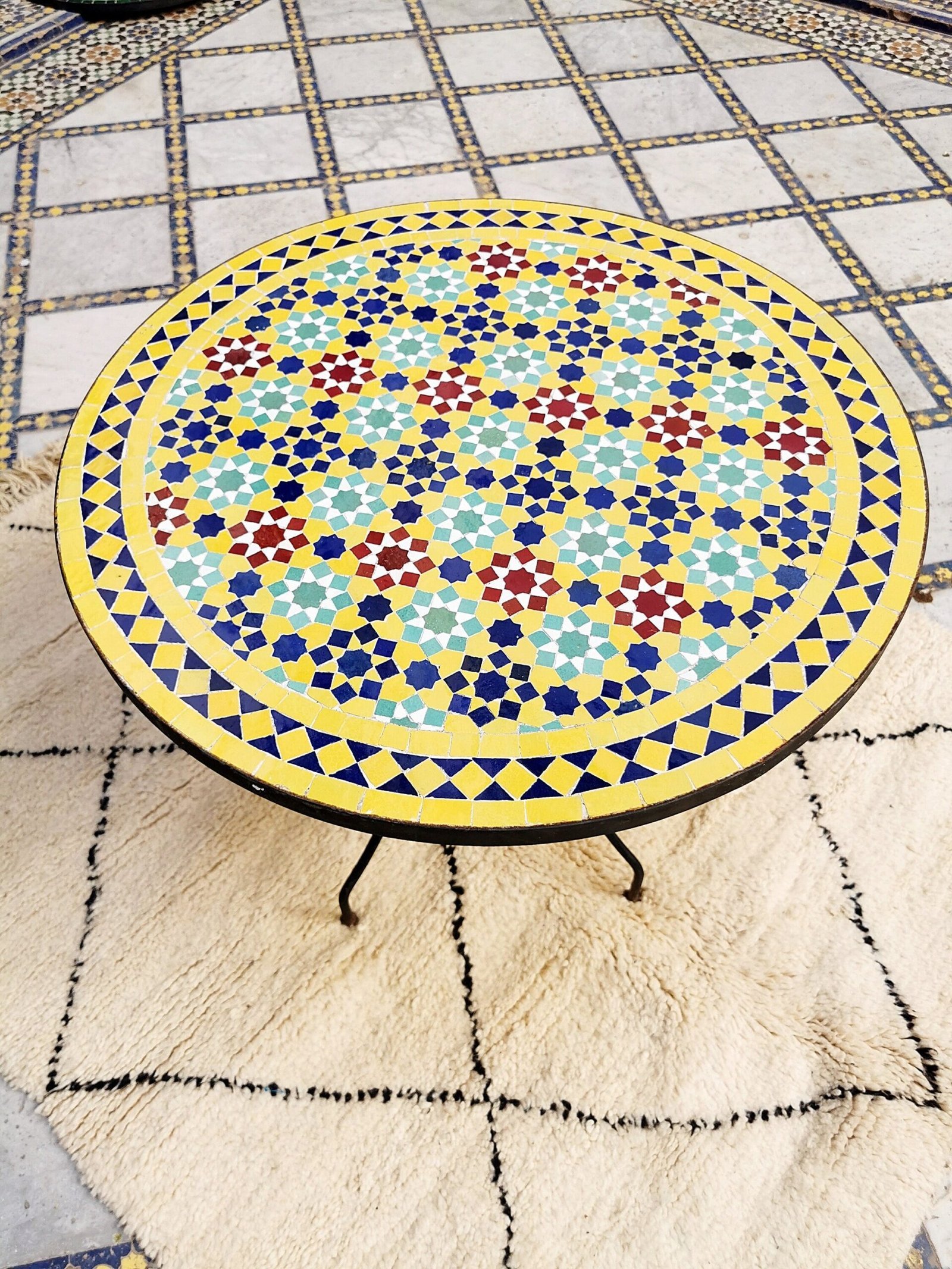 this amazing traditional Moroccan table was handcrafted by A professional worker, it represents the cultural diversity of Moroccan handcrafts and that is because of its design, material and the colors used at the surface of the table, the height of this amazing piece of art is 55 cm with a width of 40 cm and a possibility of personal customization. by obtaining such objects you would be helping a dying craft to flourish again so that contact between the past and the present would never die not mentioning the happiness it would bring to poor workers on fields like this .