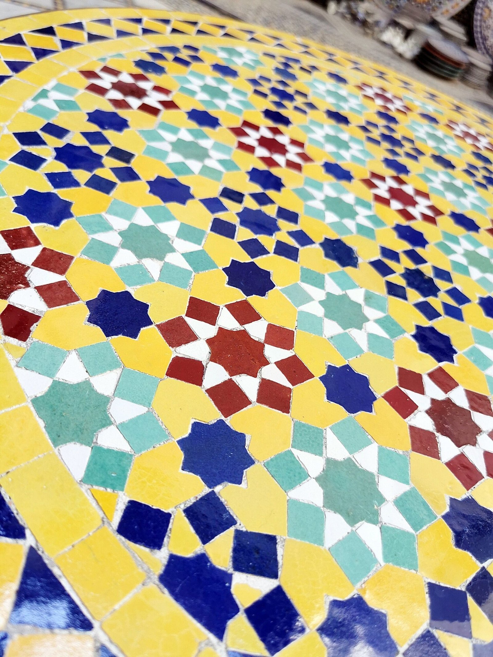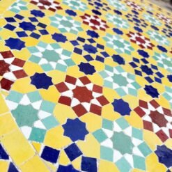 Moving to Zellige, when it bakes for the first time, and the second time with the paint it is given to Nekkach that decides what kind of pattern will be used on it depends on where Zellige will be put. He spreads them flipped in a geometrical pattern based on ancient references such as Karaouiyn, and the king’s palaces…