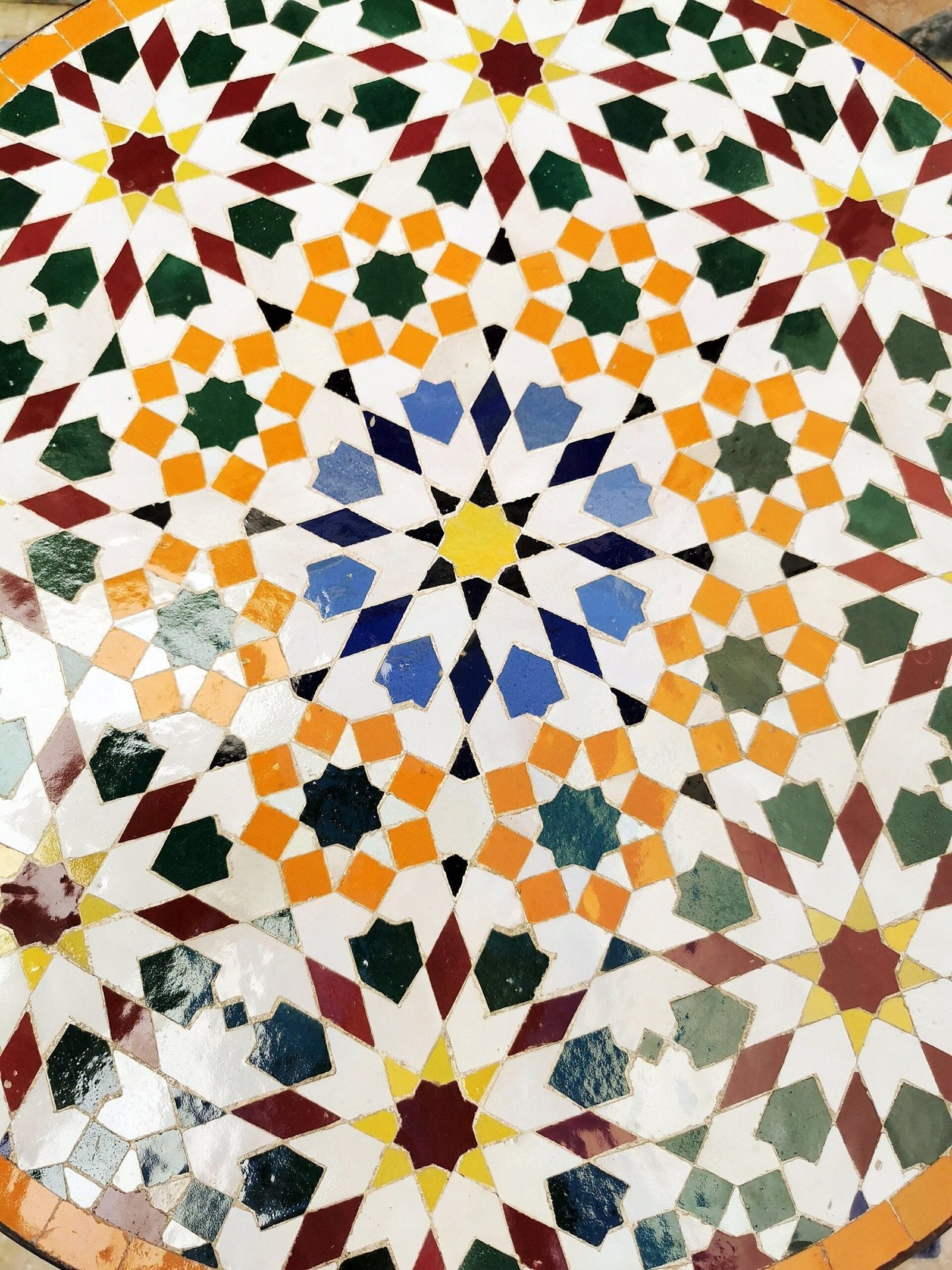 Moving to Zellige, when it bakes for the first time, and the second time with the paint it is given to Nekkach that decides what kind of pattern will be used on it depends on where Zellige will be put. He spreads them flipped in a geometrical pattern based on ancient references such as Karaouiyn, and the king’s palaces…