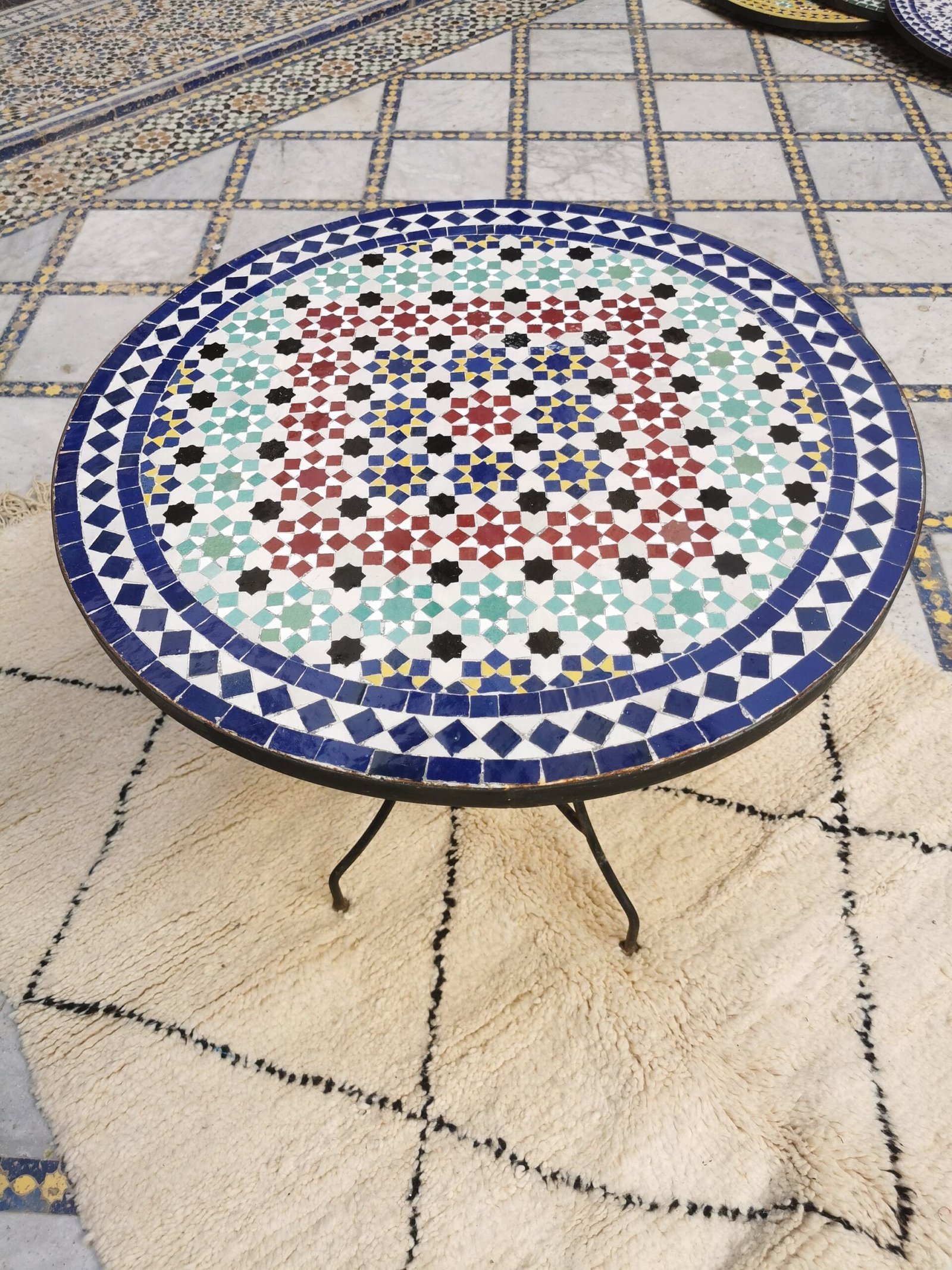 this amazing traditional Moroccan table was handcrafted by A professional worker, it represents the cultural diversity of Moroccan handcrafts and that is because of its design, material and the colors used at the surface of the table, the height of this amazing piece of art is 55 cm with a possibility of personal customization. by obtaining such objects you would be helping a dying craft to flourish again so that contact between the past and the present would never die not mentioning the happiness it would bring to poor workers on fields like this .