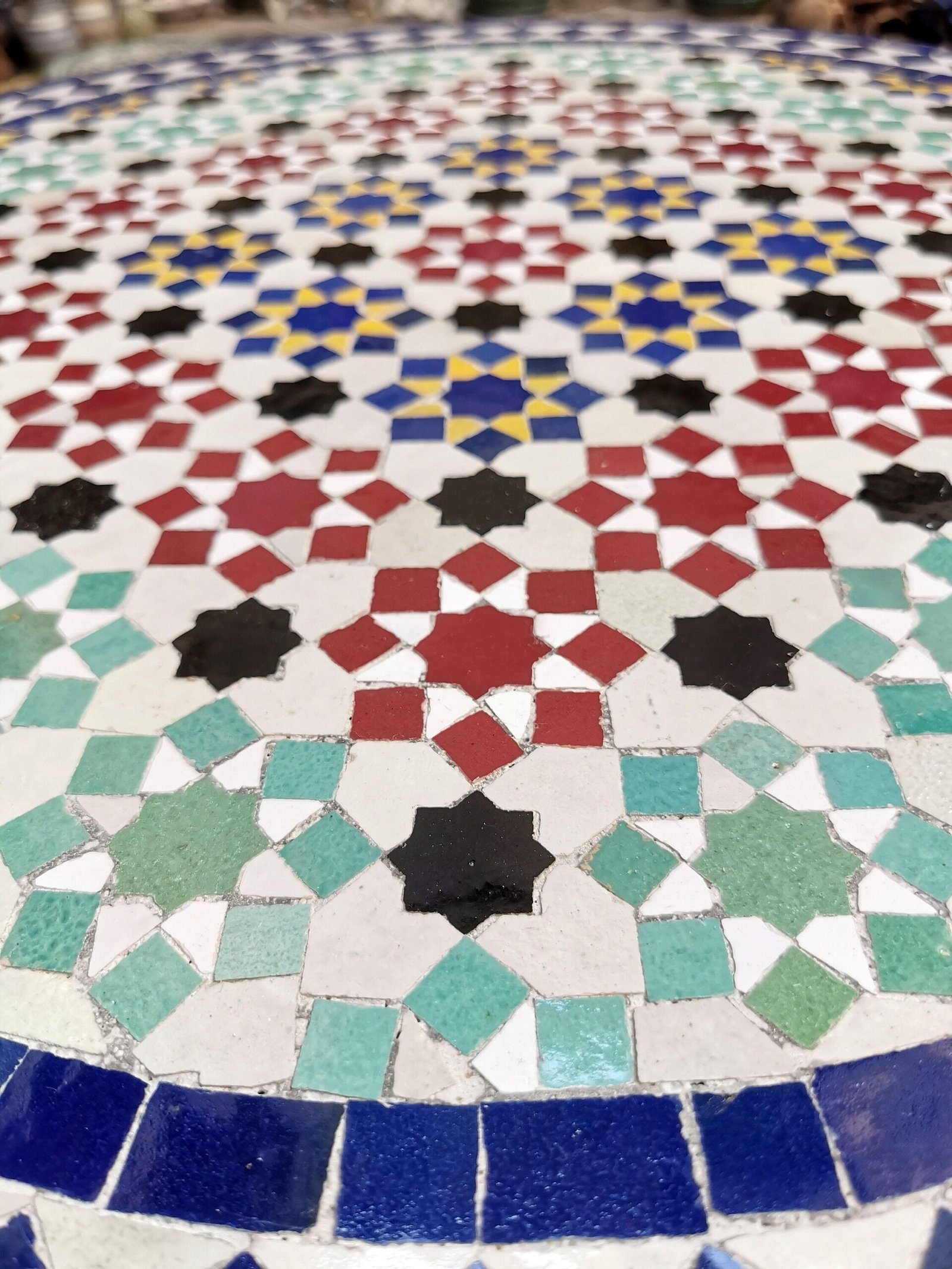 Moving to Zellige, when it bakes for the first time, and the second time with the paint it is given to Nekkach that decides what kind of pattern will be used on it depends on where Zellige will be put. He spreads them flipped in a geometrical pattern based on ancient references such as Karaouiyn, and the king’s palaces…