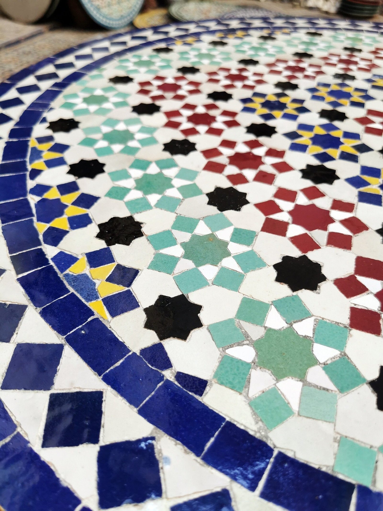 Then we use a material called ” La resin ” or ” cola sima” and we let them dry. After that we flip them to the front to see the design of the Zellige. That is the workmanship of Clay in the City of Fes.