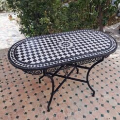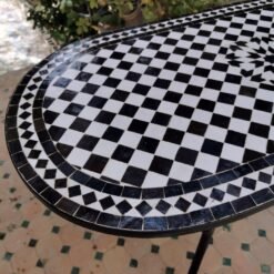 CUSTOMIZABLE Oval Mosaic Table – Crafts Mosaic Table – Black and White Mid Century Zellije Table – Dinin Table – GIFT