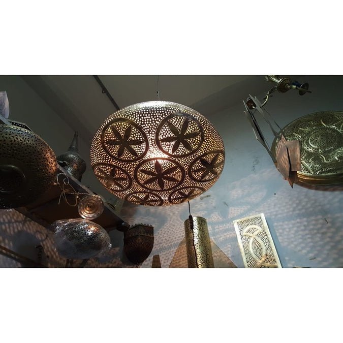 Our Ceiling Light Moroccan Lighting Luminaire contains a one-of-a-kind shape and is finely handcrafted in raw brass to provide that exciting element in your home or workspace.