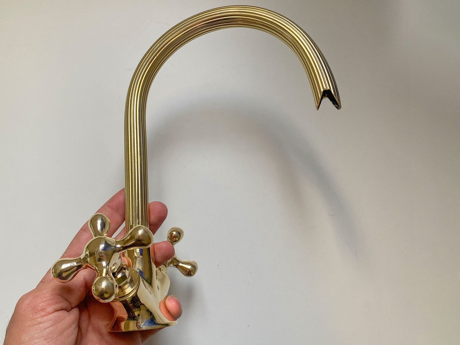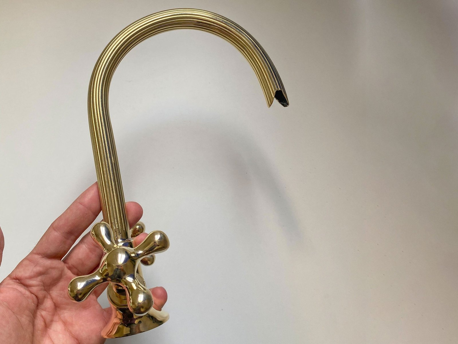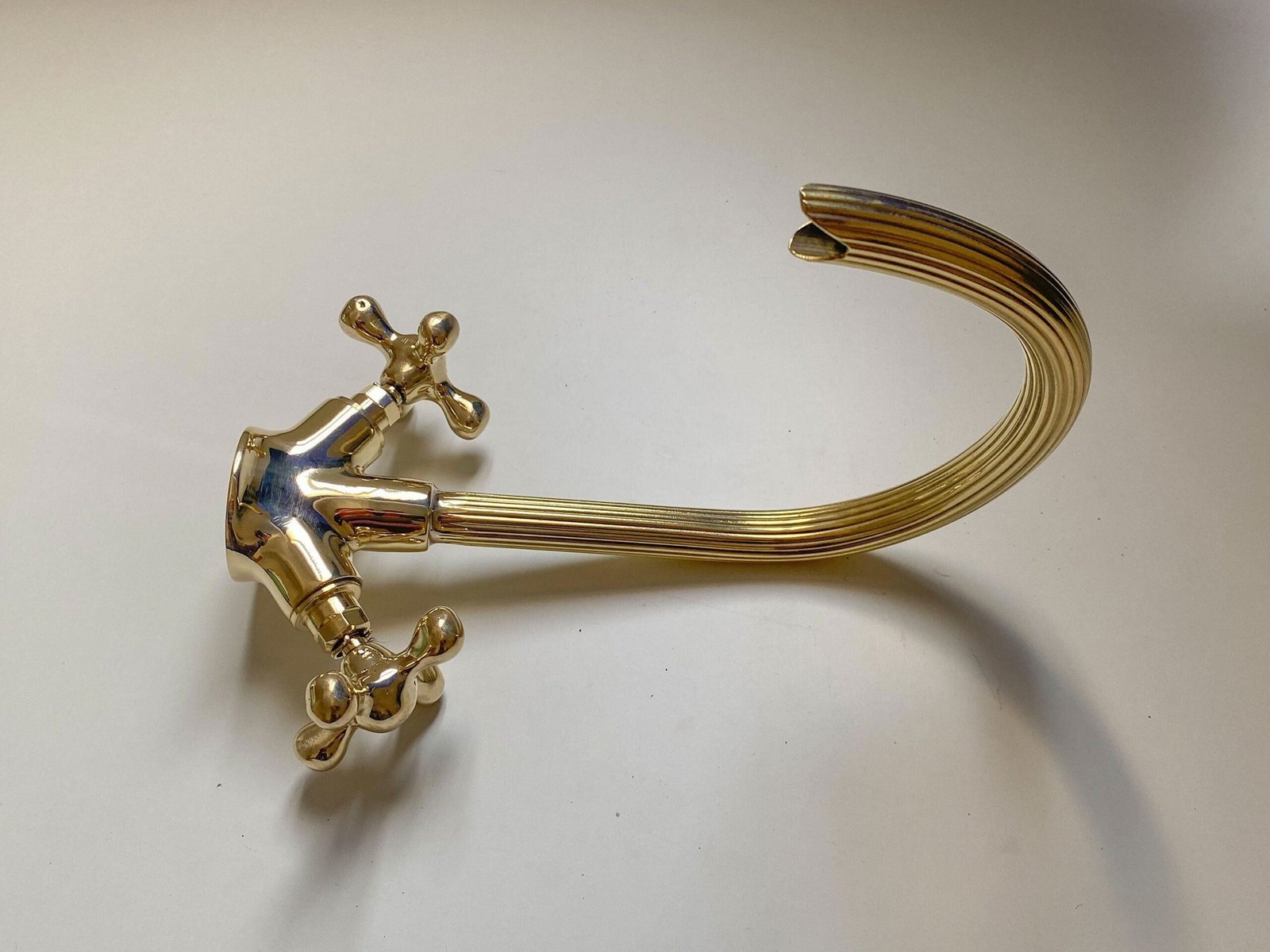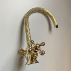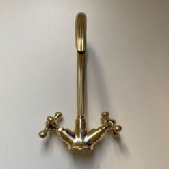 Gooseneck Bathroom Vanity Solid Brass Faucet, Unlacquered Brass with Simple Cross Handles Hot and Cold Water Tap , Brass Kitchen Faucets
