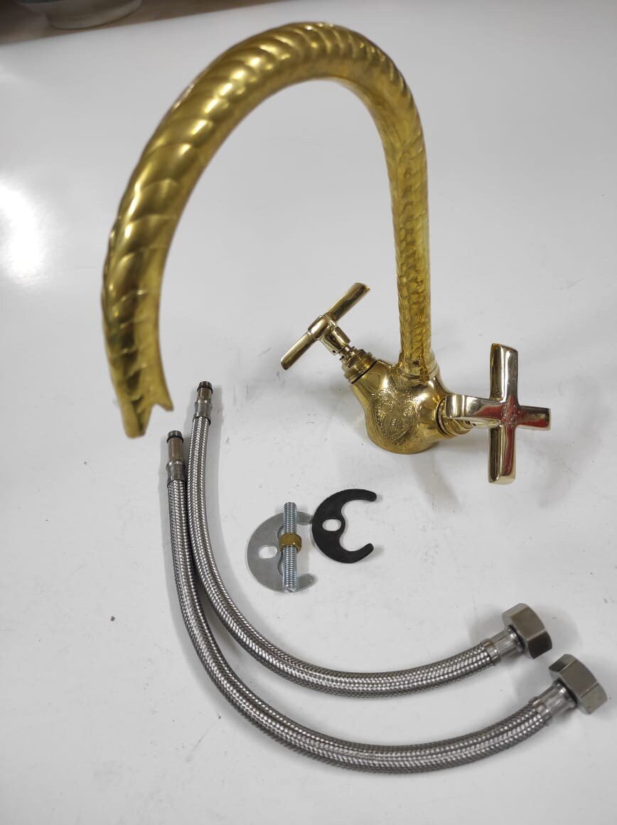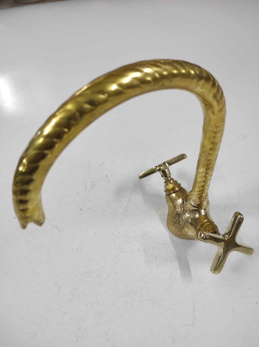 Gooseneck Faucet, handcrafted Bathroom and kitchen brass Faucet Moroccan Brass Gold color Faucet Tap Kitchen Faucet,