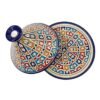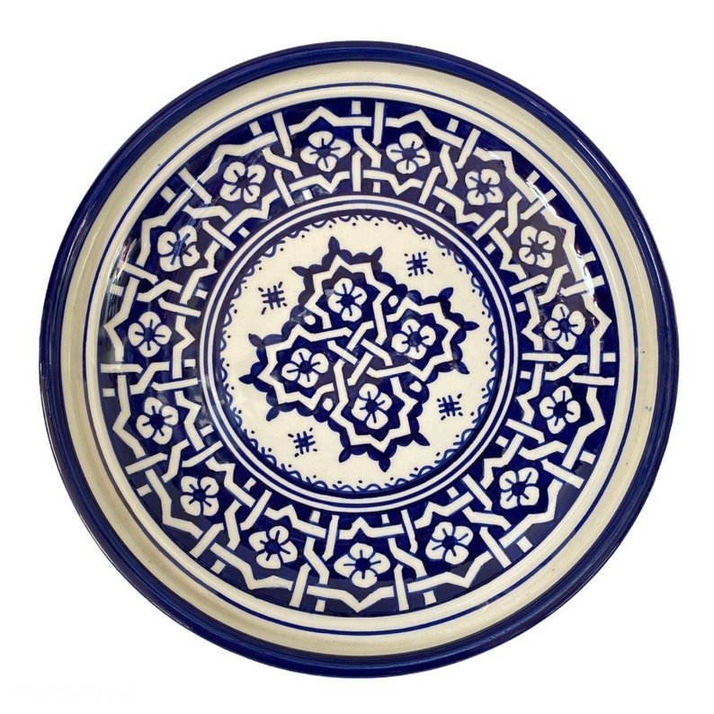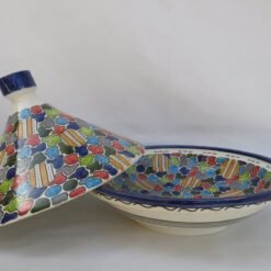 Fes ceramic tagine dish, handmade and hand-painted. This tagine is only for serving, and not for cook. This tagine dish is made to eat from in and also to decorate. This tagine is cooked twice at 1200 degrees, which allows it to be put in the dishwasher, also in the microwave.