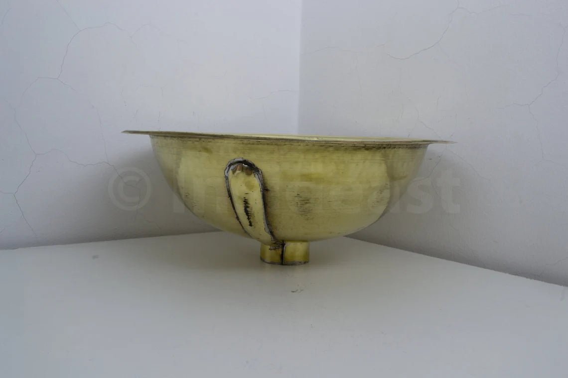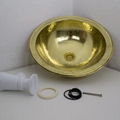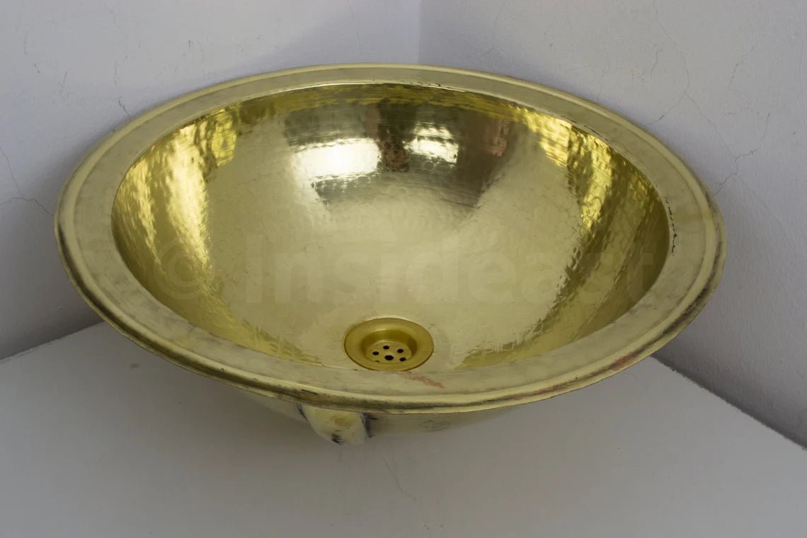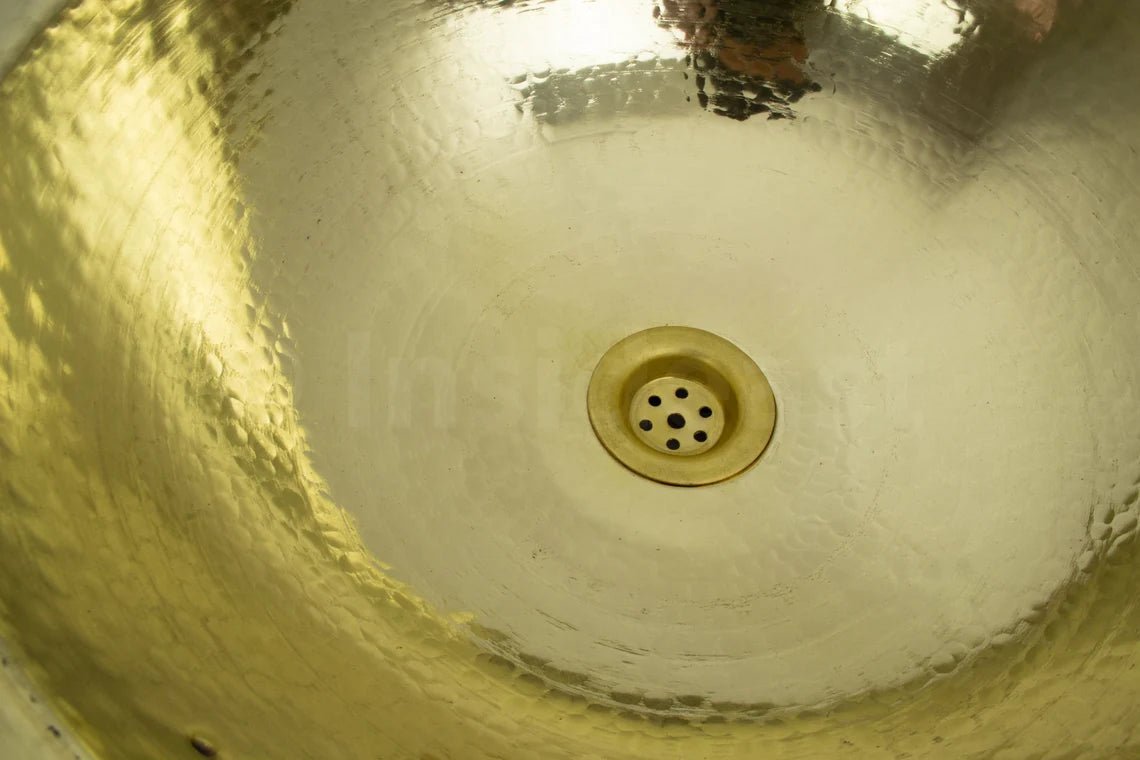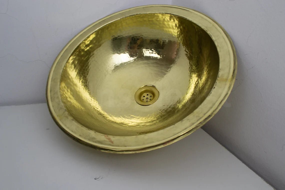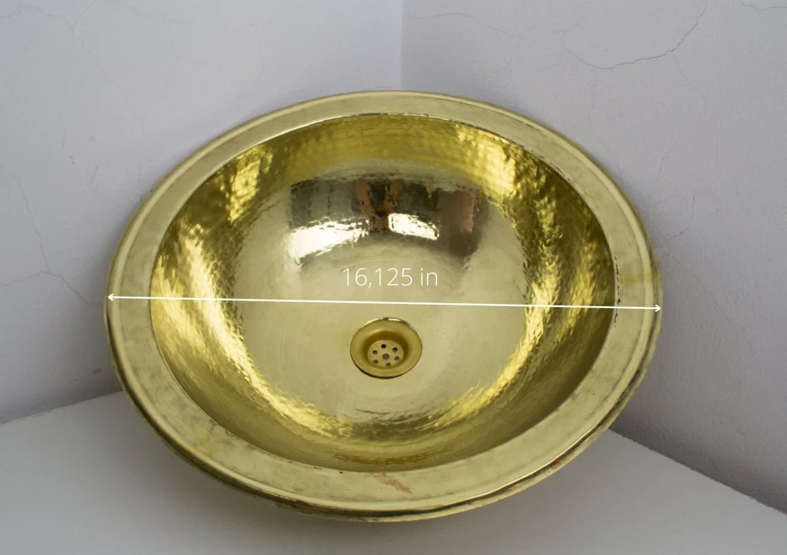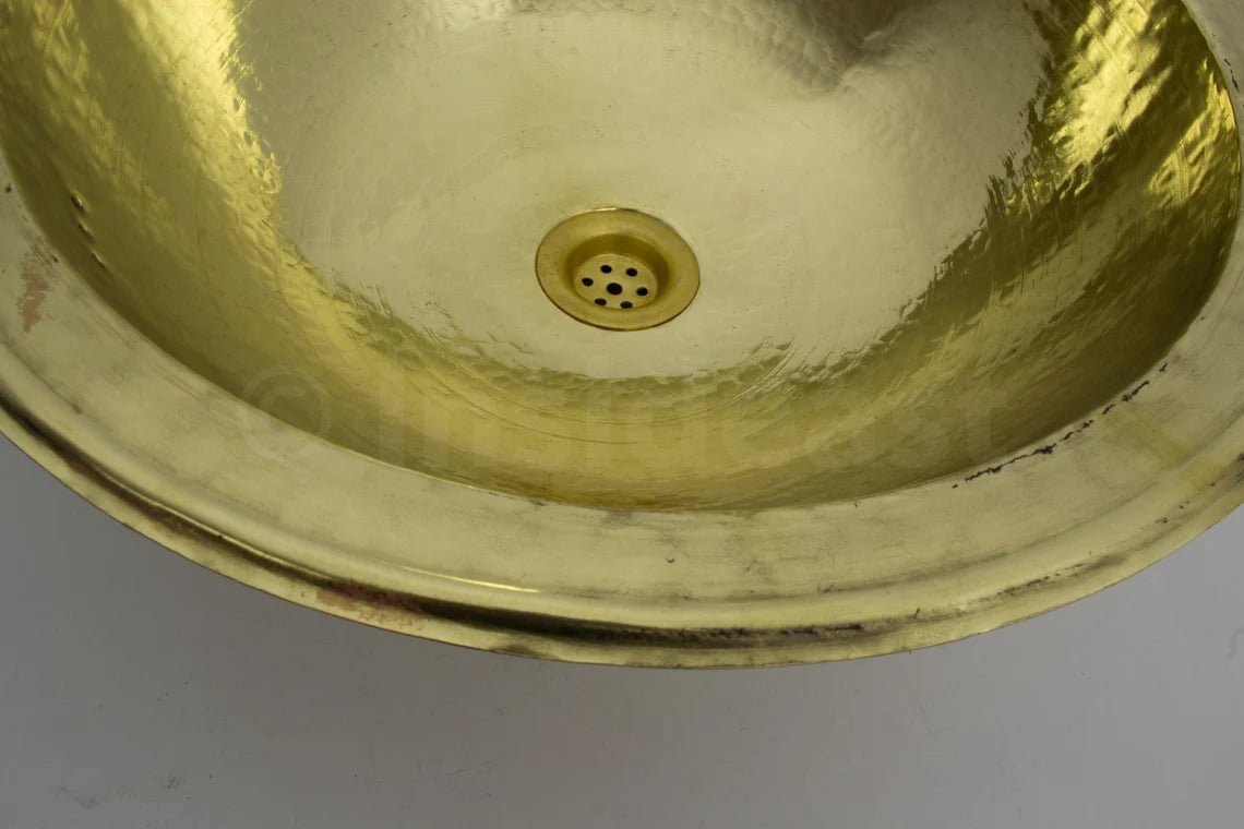 -Handcrafted hammered solid brass drop in bathroom sink, made of a 16th pure brass sheet with its matching drain. Made in fez by passionate craftsmen and excellent workmanship, designed to last.