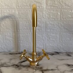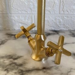 This faucet is 100% handmade of solid unlacquered brass with matte finish, it gets warm patina overtime. It will add an elegant, charming and antique decoration to your space.